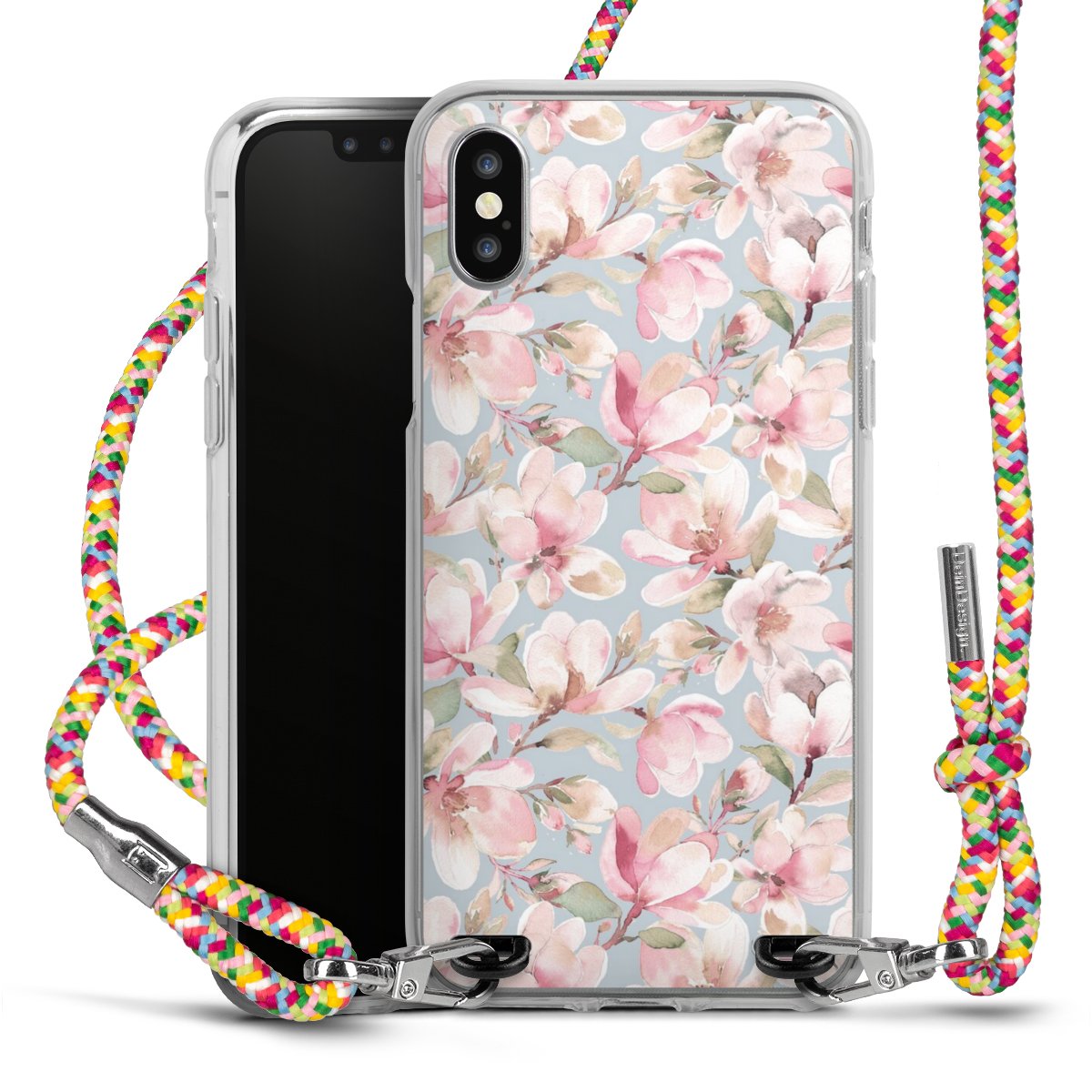 The flexible case is made from a highquality TPU material (thermoplastic Polyurethan). Thanks to its longlasting and break resistant characterisitcs, the case is flexible yet consistent in form and has a great grip and feel. The textile strap made from Polyester gives a chic yet casual accent allowing you to carry your phone like a bag or necklace - a practical gadget perfect for your next adventure. The textile strap is about 1.70 meters long and the length can easily be adjusted through the knots. Our Carry Case is available in Colourful, Mint-Camouflage, Very-Berry, Sahara-Sand and Sparkling-Neon. The ends of the textile strap are covered with metallic end caps to protect them against fraying.