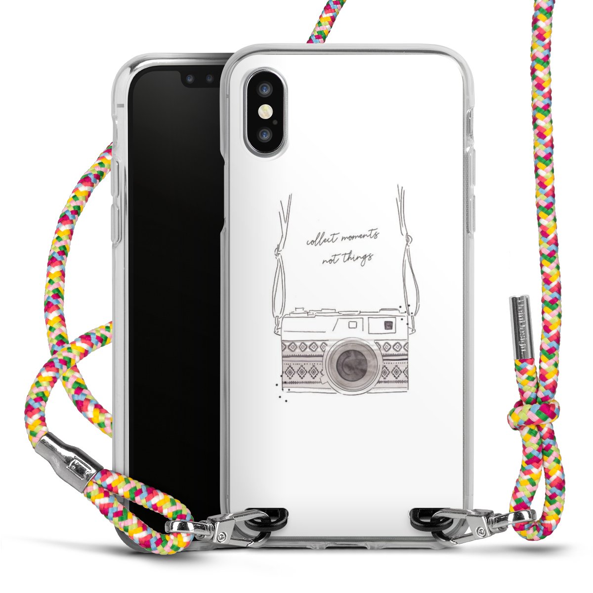 The flexible case is made from a highquality TPU material (thermoplastic Polyurethan). Thanks to its longlasting and break resistant characterisitcs, the case is flexible yet consistent in form and has a great grip and feel. The textile strap made from Polyester gives a chic yet casual accent allowing you to carry your phone like a bag or necklace - a practical gadget perfect for your next adventure. The textile strap is about 1.70 meters long and the length can easily be adjusted through the knots. Our Carry Case is available in Colourful, Mint-Camouflage, Very-Berry, Sahara-Sand and Sparkling-Neon. The ends of the textile strap are covered with metallic end caps to protect them against fraying.