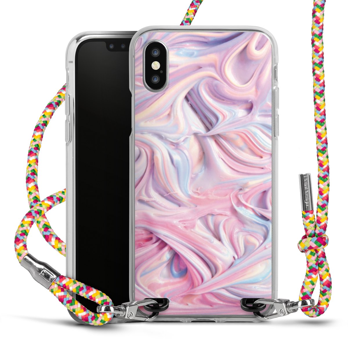 The flexible case is made from a highquality TPU material (thermoplastic Polyurethan). Thanks to its longlasting and break resistant characterisitcs, the case is flexible yet consistent in form and has a great grip and feel. The textile strap made from Polyester gives a chic yet casual accent allowing you to carry your phone like a bag or necklace - a practical gadget perfect for your next adventure. The textile strap is about 1.70 meters long and the length can easily be adjusted through the knots. Our Carry Case is available in Colourful, Mint-Camouflage, Very-Berry, Sahara-Sand and Sparkling-Neon. The ends of the textile strap are covered with metallic end caps to protect them against fraying.