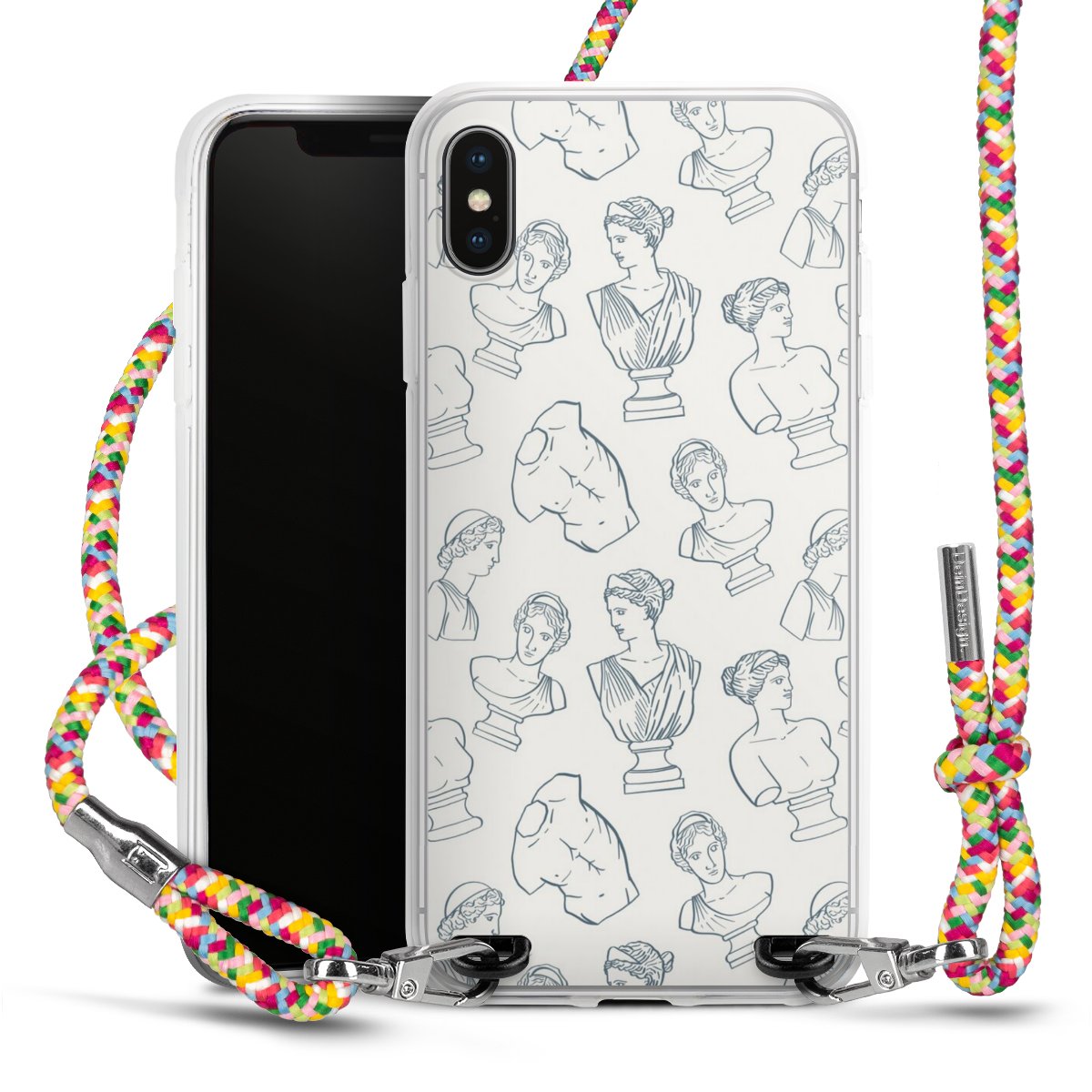 The flexible case is made from a highquality TPU material (thermoplastic Polyurethan). Thanks to its longlasting and break resistant characterisitcs, the case is flexible yet consistent in form and has a great grip and feel. The textile strap made from Polyester gives a chic yet casual accent allowing you to carry your phone like a bag or necklace - a practical gadget perfect for your next adventure. The textile strap is about 1.70 meters long and the length can easily be adjusted through the knots. Our Carry Case is available in Colourful, Mint-Camouflage, Very-Berry, Sahara-Sand and Sparkling-Neon. The ends of the textile strap are covered with metallic end caps to protect them against fraying.