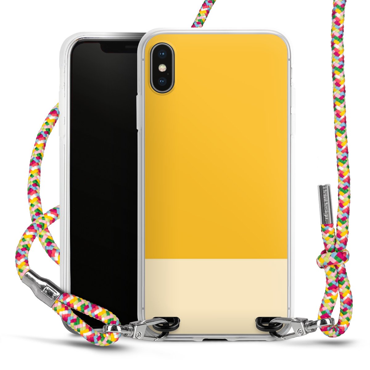 The flexible case is made from a highquality TPU material (thermoplastic Polyurethan). Thanks to its longlasting and break resistant characterisitcs, the case is flexible yet consistent in form and has a great grip and feel. The textile strap made from Polyester gives a chic yet casual accent allowing you to carry your phone like a bag or necklace - a practical gadget perfect for your next adventure. The textile strap is about 1.70 meters long and the length can easily be adjusted through the knots. Our Carry Case is available in Colourful, Mint-Camouflage, Very-Berry, Sahara-Sand and Sparkling-Neon. The ends of the textile strap are covered with metallic end caps to protect them against fraying.