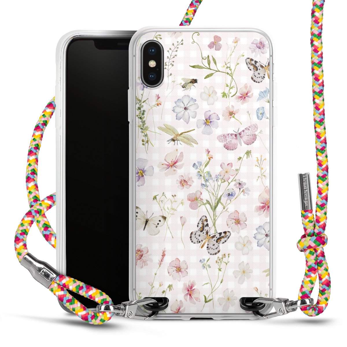 The flexible case is made from a highquality TPU material (thermoplastic Polyurethan). Thanks to its longlasting and break resistant characterisitcs, the case is flexible yet consistent in form and has a great grip and feel. The textile strap made from Polyester gives a chic yet casual accent allowing you to carry your phone like a bag or necklace - a practical gadget perfect for your next adventure. The textile strap is about 1.70 meters long and the length can easily be adjusted through the knots. Our Carry Case is available in Colourful, Mint-Camouflage, Very-Berry, Sahara-Sand and Sparkling-Neon. The ends of the textile strap are covered with metallic end caps to protect them against fraying.