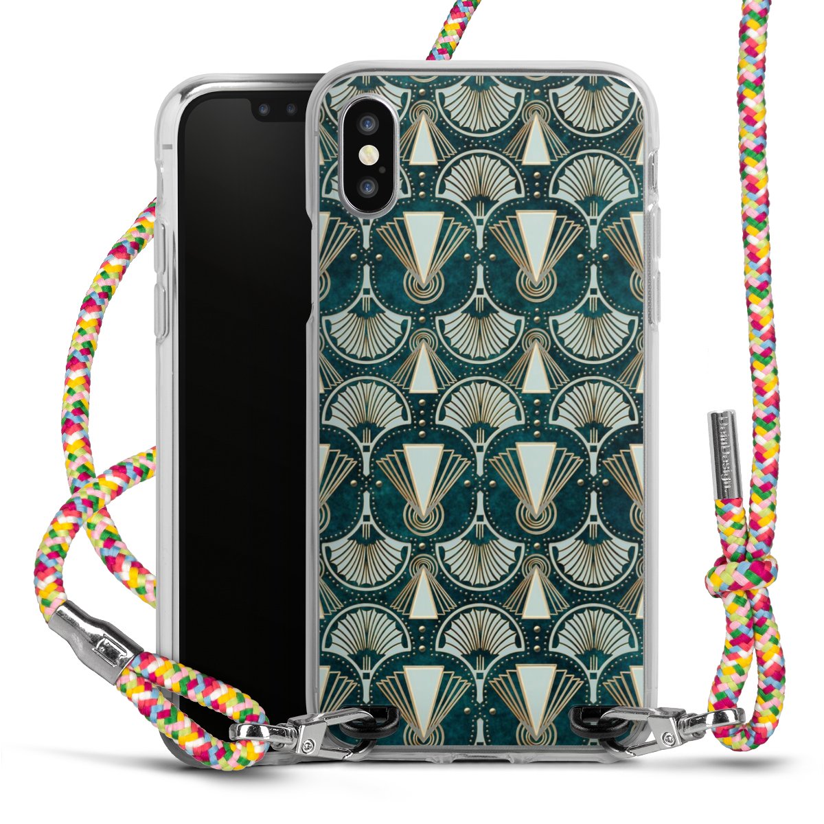 The flexible case is made from a highquality TPU material (thermoplastic Polyurethan). Thanks to its longlasting and break resistant characterisitcs, the case is flexible yet consistent in form and has a great grip and feel. The textile strap made from Polyester gives a chic yet casual accent allowing you to carry your phone like a bag or necklace - a practical gadget perfect for your next adventure. The textile strap is about 1.70 meters long and the length can easily be adjusted through the knots. Our Carry Case is available in Colourful, Mint-Camouflage, Very-Berry, Sahara-Sand and Sparkling-Neon. The ends of the textile strap are covered with metallic end caps to protect them against fraying.