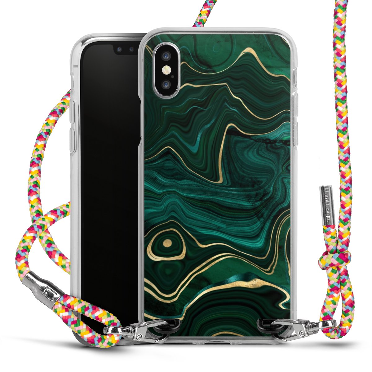 The flexible case is made from a highquality TPU material (thermoplastic Polyurethan). Thanks to its longlasting and break resistant characterisitcs, the case is flexible yet consistent in form and has a great grip and feel. The textile strap made from Polyester gives a chic yet casual accent allowing you to carry your phone like a bag or necklace - a practical gadget perfect for your next adventure. The textile strap is about 1.70 meters long and the length can easily be adjusted through the knots. Our Carry Case is available in Colourful, Mint-Camouflage, Very-Berry, Sahara-Sand and Sparkling-Neon. The ends of the textile strap are covered with metallic end caps to protect them against fraying.