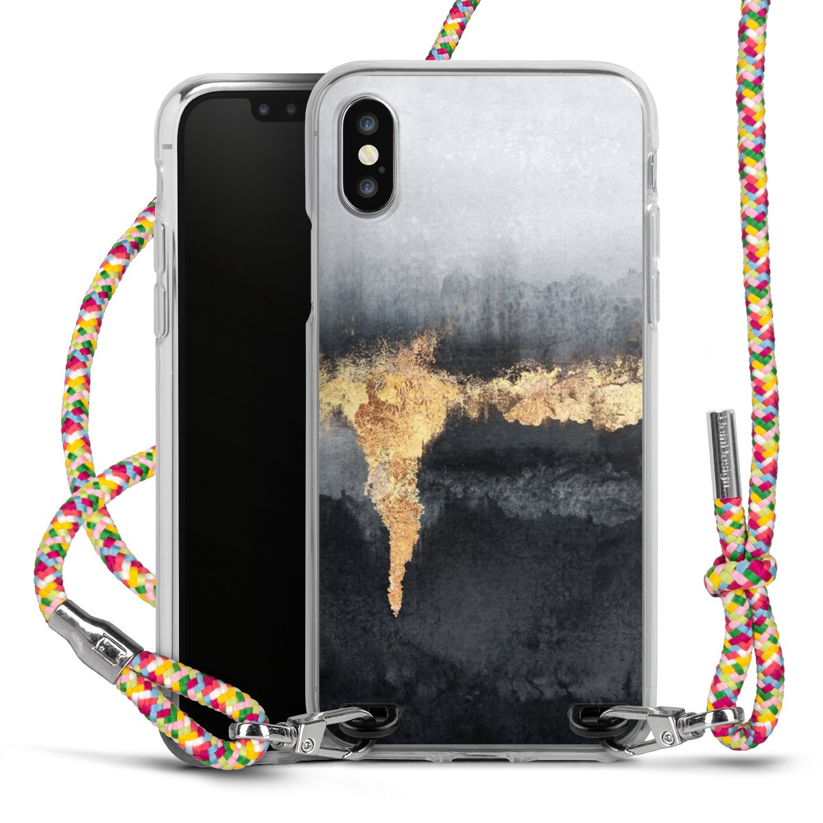 The flexible case is made from a highquality TPU material (thermoplastic Polyurethan). Thanks to its longlasting and break resistant characterisitcs, the case is flexible yet consistent in form and has a great grip and feel. The textile strap made from Polyester gives a chic yet casual accent allowing you to carry your phone like a bag or necklace - a practical gadget perfect for your next adventure. The textile strap is about 1.70 meters long and the length can easily be adjusted through the knots. Our Carry Case is available in Colourful, Mint-Camouflage, Very-Berry, Sahara-Sand and Sparkling-Neon. The ends of the textile strap are covered with metallic end caps to protect them against fraying.