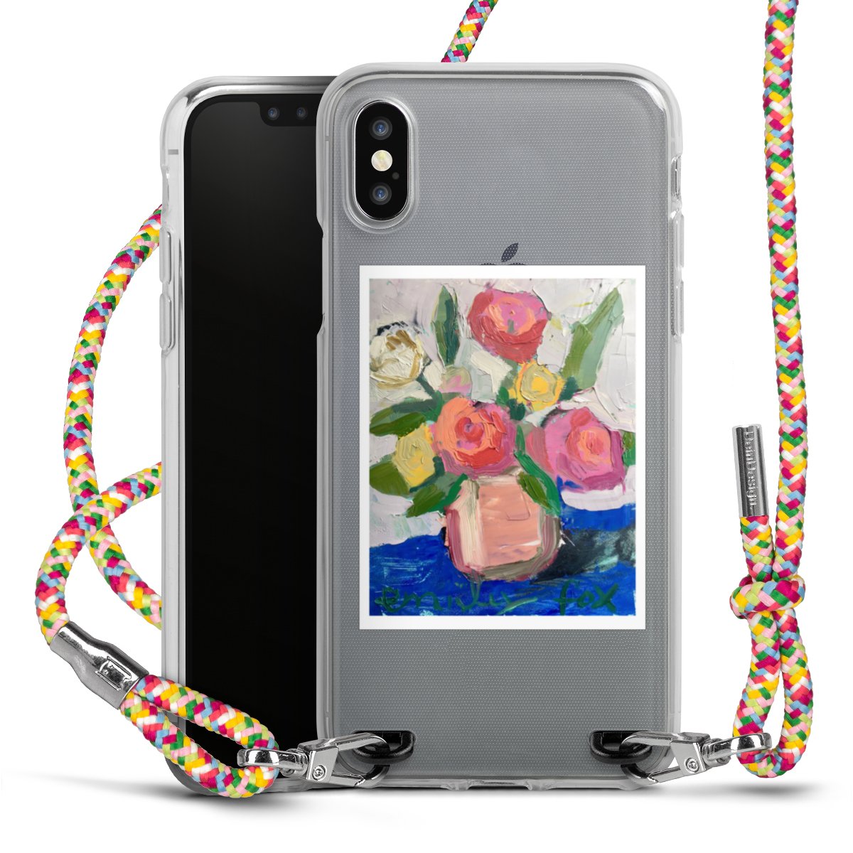 The flexible case is made from a highquality TPU material (thermoplastic Polyurethan). Thanks to its longlasting and break resistant characterisitcs, the case is flexible yet consistent in form and has a great grip and feel. The textile strap made from Polyester gives a chic yet casual accent allowing you to carry your phone like a bag or necklace - a practical gadget perfect for your next adventure. The textile strap is about 1.70 meters long and the length can easily be adjusted through the knots. Our Carry Case is available in Colourful, Mint-Camouflage, Very-Berry, Sahara-Sand and Sparkling-Neon. The ends of the textile strap are covered with metallic end caps to protect them against fraying.