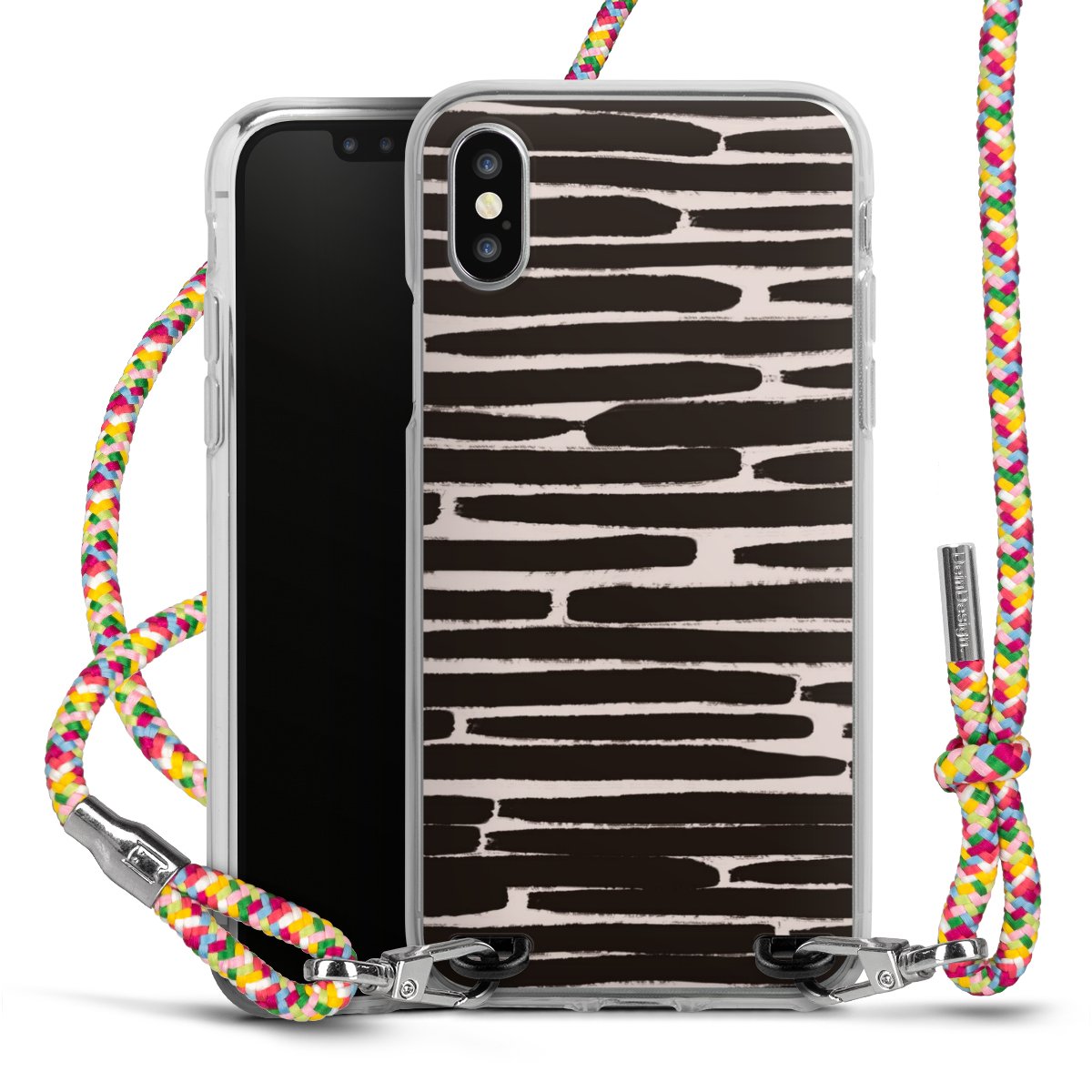 The flexible case is made from a highquality TPU material (thermoplastic Polyurethan). Thanks to its longlasting and break resistant characterisitcs, the case is flexible yet consistent in form and has a great grip and feel. The textile strap made from Polyester gives a chic yet casual accent allowing you to carry your phone like a bag or necklace - a practical gadget perfect for your next adventure. The textile strap is about 1.70 meters long and the length can easily be adjusted through the knots. Our Carry Case is available in Colourful, Mint-Camouflage, Very-Berry, Sahara-Sand and Sparkling-Neon. The ends of the textile strap are covered with metallic end caps to protect them against fraying.
