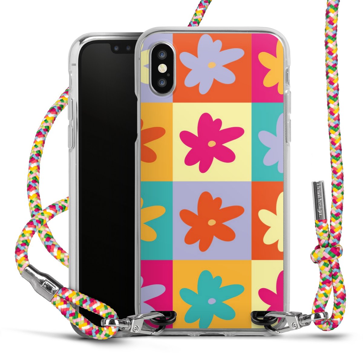 The flexible case is made from a highquality TPU material (thermoplastic Polyurethan). Thanks to its longlasting and break resistant characterisitcs, the case is flexible yet consistent in form and has a great grip and feel. The textile strap made from Polyester gives a chic yet casual accent allowing you to carry your phone like a bag or necklace - a practical gadget perfect for your next adventure. The textile strap is about 1.70 meters long and the length can easily be adjusted through the knots. Our Carry Case is available in Colourful, Mint-Camouflage, Very-Berry, Sahara-Sand and Sparkling-Neon. The ends of the textile strap are covered with metallic end caps to protect them against fraying.