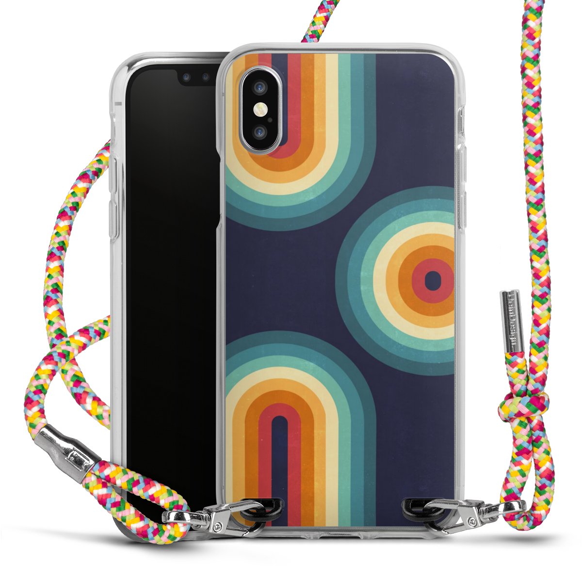 The flexible case is made from a highquality TPU material (thermoplastic Polyurethan). Thanks to its longlasting and break resistant characterisitcs, the case is flexible yet consistent in form and has a great grip and feel. The textile strap made from Polyester gives a chic yet casual accent allowing you to carry your phone like a bag or necklace - a practical gadget perfect for your next adventure. The textile strap is about 1.70 meters long and the length can easily be adjusted through the knots. Our Carry Case is available in Colourful, Mint-Camouflage, Very-Berry, Sahara-Sand and Sparkling-Neon. The ends of the textile strap are covered with metallic end caps to protect them against fraying.