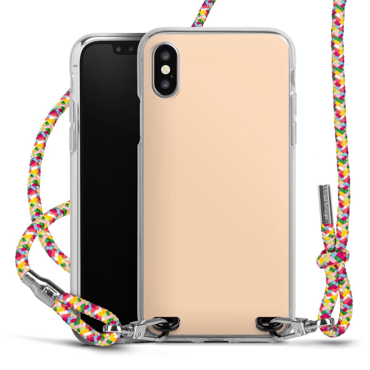 The flexible case is made from a highquality TPU material (thermoplastic Polyurethan). Thanks to its longlasting and break resistant characterisitcs, the case is flexible yet consistent in form and has a great grip and feel. The textile strap made from Polyester gives a chic yet casual accent allowing you to carry your phone like a bag or necklace - a practical gadget perfect for your next adventure. The textile strap is about 1.70 meters long and the length can easily be adjusted through the knots. Our Carry Case is available in Colourful, Mint-Camouflage, Very-Berry, Sahara-Sand and Sparkling-Neon. The ends of the textile strap are covered with metallic end caps to protect them against fraying.