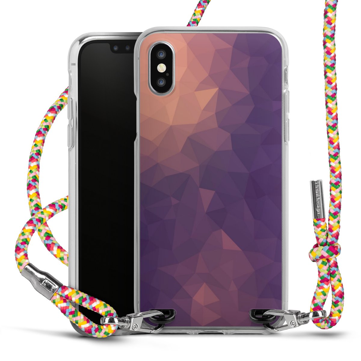 The flexible case is made from a highquality TPU material (thermoplastic Polyurethan). Thanks to its longlasting and break resistant characterisitcs, the case is flexible yet consistent in form and has a great grip and feel. The textile strap made from Polyester gives a chic yet casual accent allowing you to carry your phone like a bag or necklace - a practical gadget perfect for your next adventure. The textile strap is about 1.70 meters long and the length can easily be adjusted through the knots. Our Carry Case is available in Colourful, Mint-Camouflage, Very-Berry, Sahara-Sand and Sparkling-Neon. The ends of the textile strap are covered with metallic end caps to protect them against fraying.