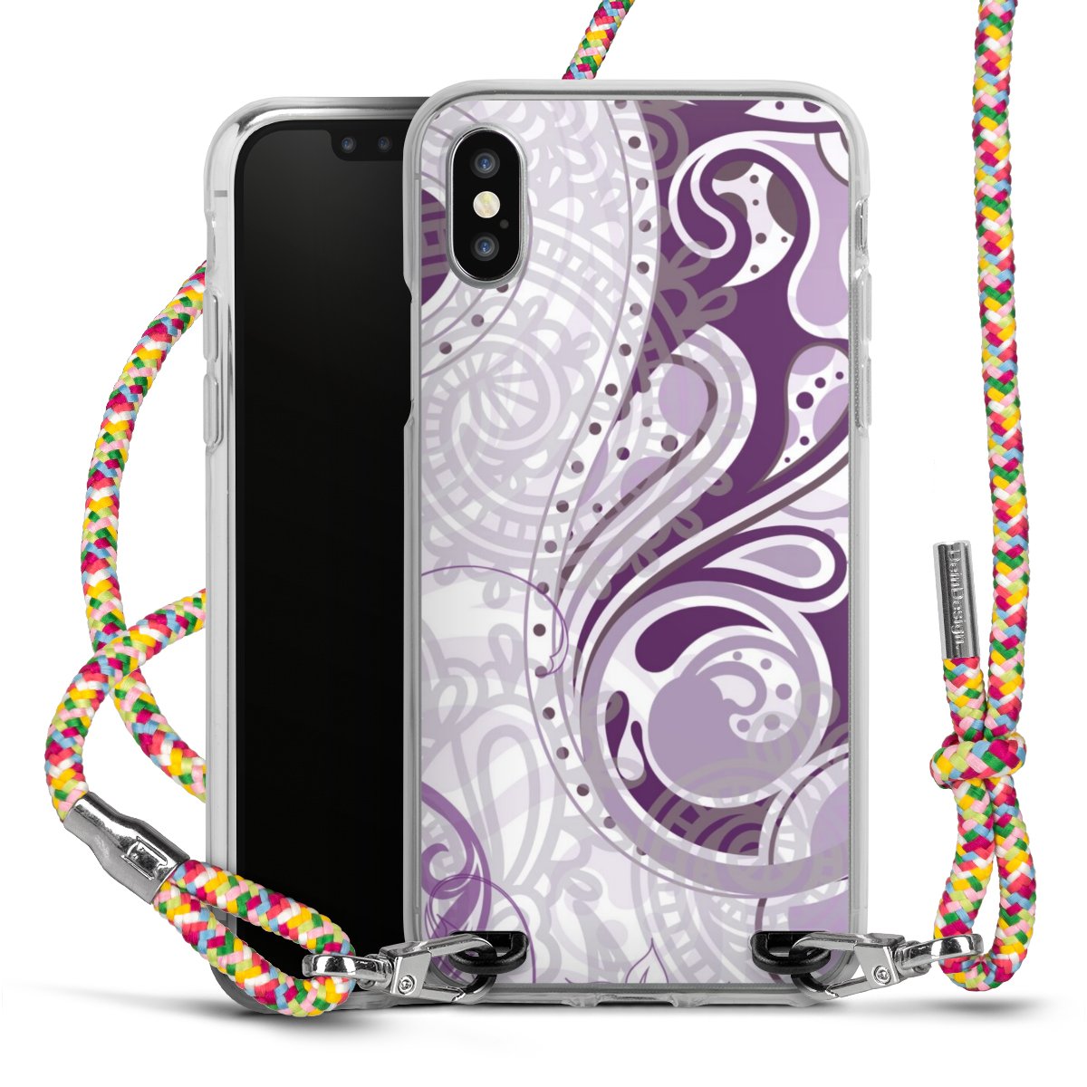 The flexible case is made from a highquality TPU material (thermoplastic Polyurethan). Thanks to its longlasting and break resistant characterisitcs, the case is flexible yet consistent in form and has a great grip and feel. The textile strap made from Polyester gives a chic yet casual accent allowing you to carry your phone like a bag or necklace - a practical gadget perfect for your next adventure. The textile strap is about 1.70 meters long and the length can easily be adjusted through the knots. Our Carry Case is available in Colourful, Mint-Camouflage, Very-Berry, Sahara-Sand and Sparkling-Neon. The ends of the textile strap are covered with metallic end caps to protect them against fraying.