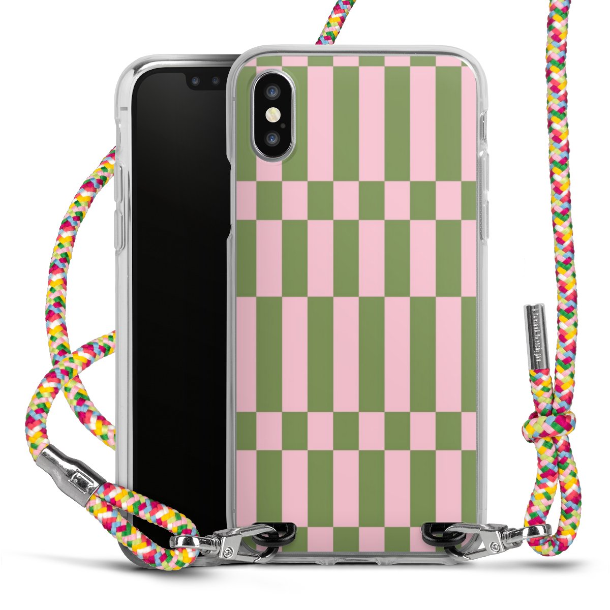 The flexible case is made from a highquality TPU material (thermoplastic Polyurethan). Thanks to its longlasting and break resistant characterisitcs, the case is flexible yet consistent in form and has a great grip and feel. The textile strap made from Polyester gives a chic yet casual accent allowing you to carry your phone like a bag or necklace - a practical gadget perfect for your next adventure. The textile strap is about 1.70 meters long and the length can easily be adjusted through the knots. Our Carry Case is available in Colourful, Mint-Camouflage, Very-Berry, Sahara-Sand and Sparkling-Neon. The ends of the textile strap are covered with metallic end caps to protect them against fraying.