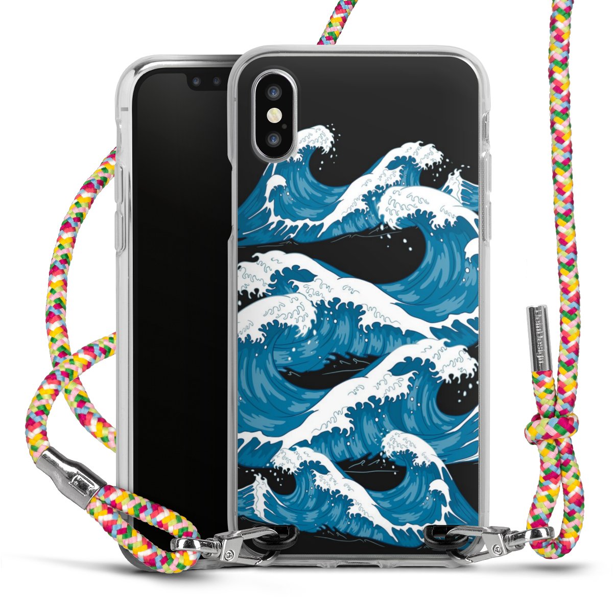 The flexible case is made from a highquality TPU material (thermoplastic Polyurethan). Thanks to its longlasting and break resistant characterisitcs, the case is flexible yet consistent in form and has a great grip and feel. The textile strap made from Polyester gives a chic yet casual accent allowing you to carry your phone like a bag or necklace - a practical gadget perfect for your next adventure. The textile strap is about 1.70 meters long and the length can easily be adjusted through the knots. Our Carry Case is available in Colourful, Mint-Camouflage, Very-Berry, Sahara-Sand and Sparkling-Neon. The ends of the textile strap are covered with metallic end caps to protect them against fraying.