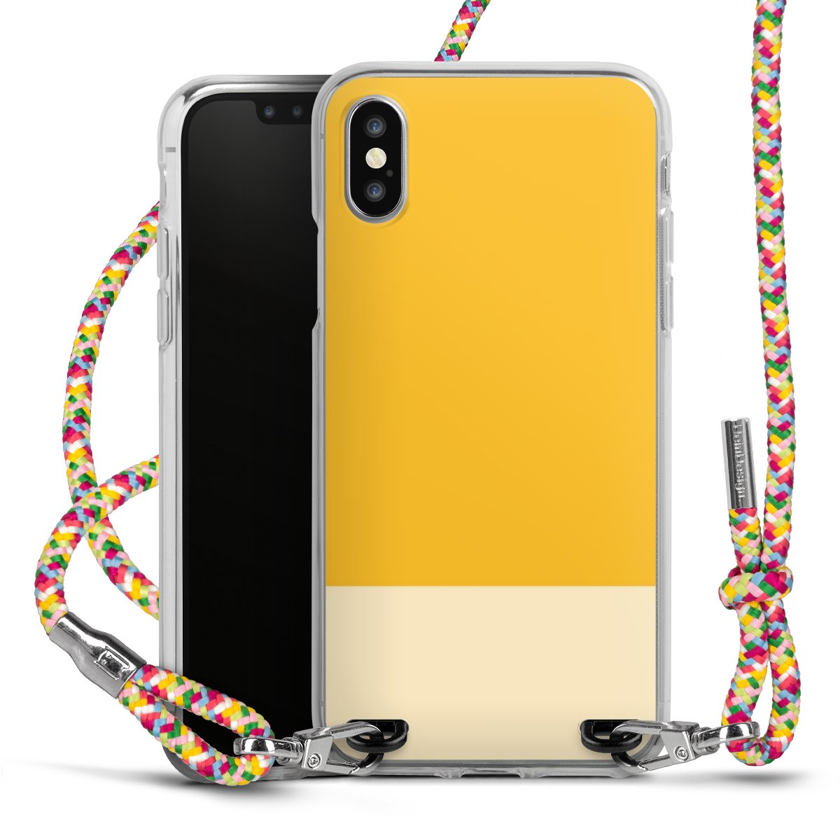 The flexible case is made from a highquality TPU material (thermoplastic Polyurethan). Thanks to its longlasting and break resistant characterisitcs, the case is flexible yet consistent in form and has a great grip and feel. The textile strap made from Polyester gives a chic yet casual accent allowing you to carry your phone like a bag or necklace - a practical gadget perfect for your next adventure. The textile strap is about 1.70 meters long and the length can easily be adjusted through the knots. Our Carry Case is available in Colourful, Mint-Camouflage, Very-Berry, Sahara-Sand and Sparkling-Neon. The ends of the textile strap are covered with metallic end caps to protect them against fraying.