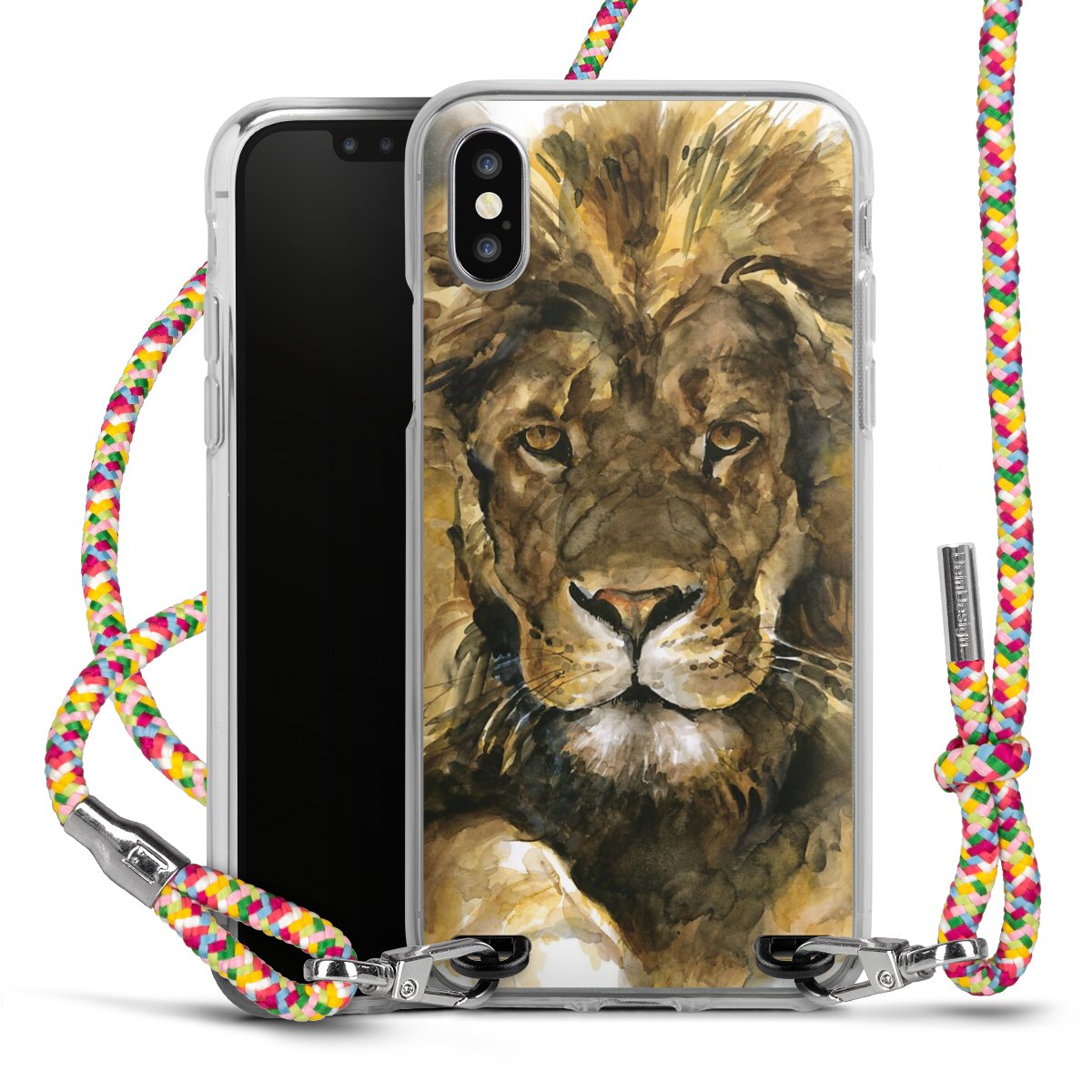 The flexible case is made from a highquality TPU material (thermoplastic Polyurethan). Thanks to its longlasting and break resistant characterisitcs, the case is flexible yet consistent in form and has a great grip and feel. The textile strap made from Polyester gives a chic yet casual accent allowing you to carry your phone like a bag or necklace - a practical gadget perfect for your next adventure. The textile strap is about 1.70 meters long and the length can easily be adjusted through the knots. Our Carry Case is available in Colourful, Mint-Camouflage, Very-Berry, Sahara-Sand and Sparkling-Neon. The ends of the textile strap are covered with metallic end caps to protect them against fraying.