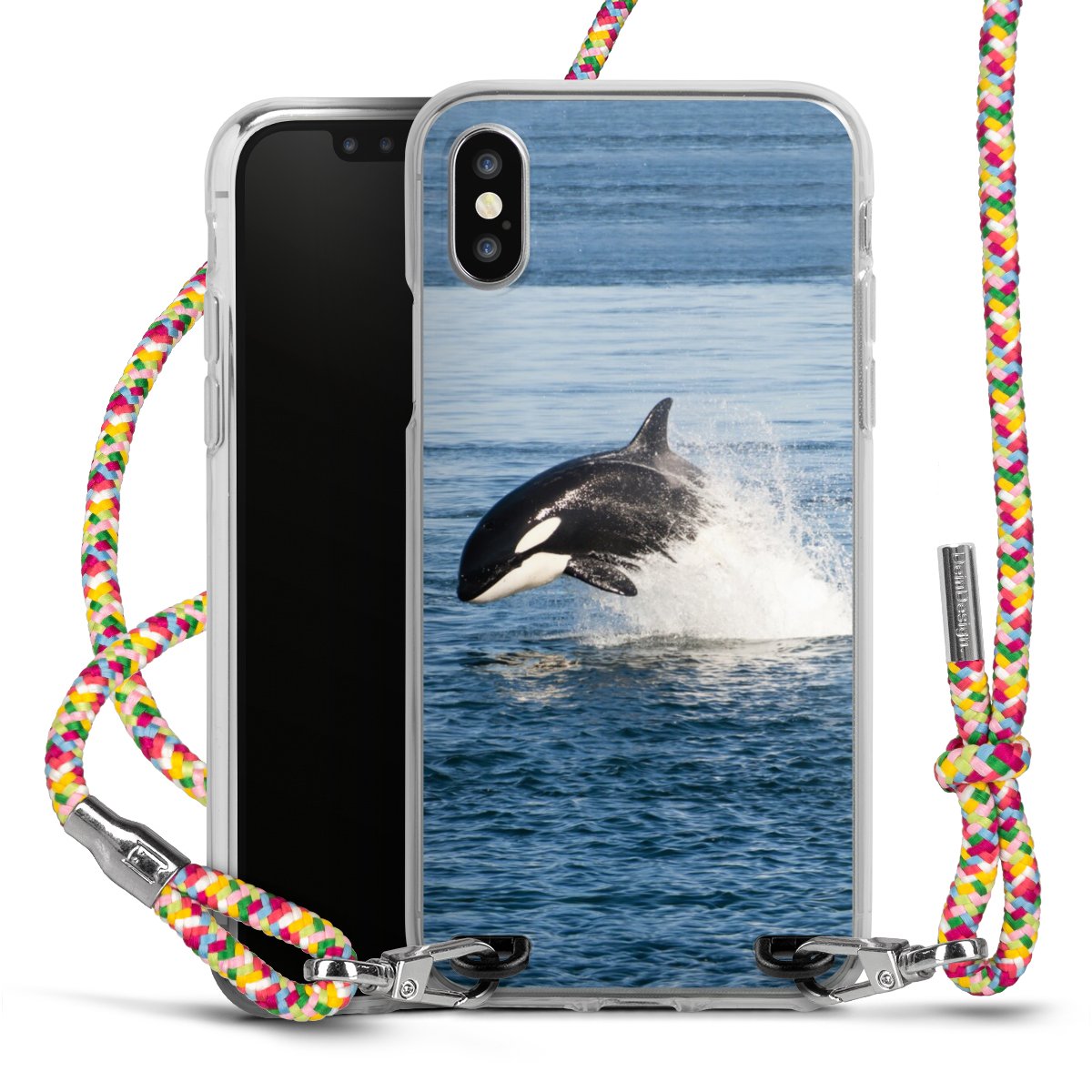The flexible case is made from a highquality TPU material (thermoplastic Polyurethan). Thanks to its longlasting and break resistant characterisitcs, the case is flexible yet consistent in form and has a great grip and feel. The textile strap made from Polyester gives a chic yet casual accent allowing you to carry your phone like a bag or necklace - a practical gadget perfect for your next adventure. The textile strap is about 1.70 meters long and the length can easily be adjusted through the knots. Our Carry Case is available in Colourful, Mint-Camouflage, Very-Berry, Sahara-Sand and Sparkling-Neon. The ends of the textile strap are covered with metallic end caps to protect them against fraying.
