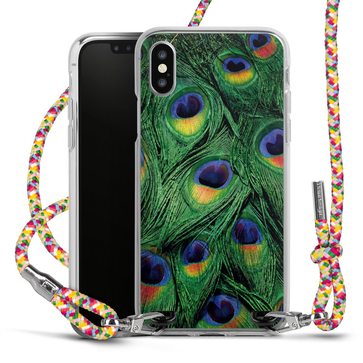 The flexible case is made from a highquality TPU material (thermoplastic Polyurethan). Thanks to its longlasting and break resistant characterisitcs, the case is flexible yet consistent in form and has a great grip and feel. The textile strap made from Polyester gives a chic yet casual accent allowing you to carry your phone like a bag or necklace - a practical gadget perfect for your next adventure. The textile strap is about 1.70 meters long and the length can easily be adjusted through the knots. Our Carry Case is available in Colourful, Mint-Camouflage, Very-Berry, Sahara-Sand and Sparkling-Neon. The ends of the textile strap are covered with metallic end caps to protect them against fraying.