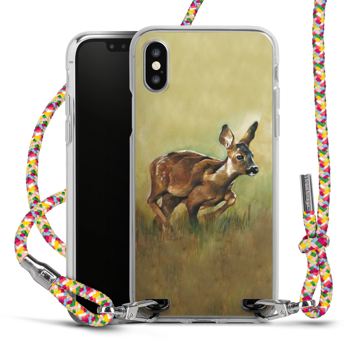 The flexible case is made from a highquality TPU material (thermoplastic Polyurethan). Thanks to its longlasting and break resistant characterisitcs, the case is flexible yet consistent in form and has a great grip and feel. The textile strap made from Polyester gives a chic yet casual accent allowing you to carry your phone like a bag or necklace - a practical gadget perfect for your next adventure. The textile strap is about 1.70 meters long and the length can easily be adjusted through the knots. Our Carry Case is available in Colourful, Mint-Camouflage, Very-Berry, Sahara-Sand and Sparkling-Neon. The ends of the textile strap are covered with metallic end caps to protect them against fraying.