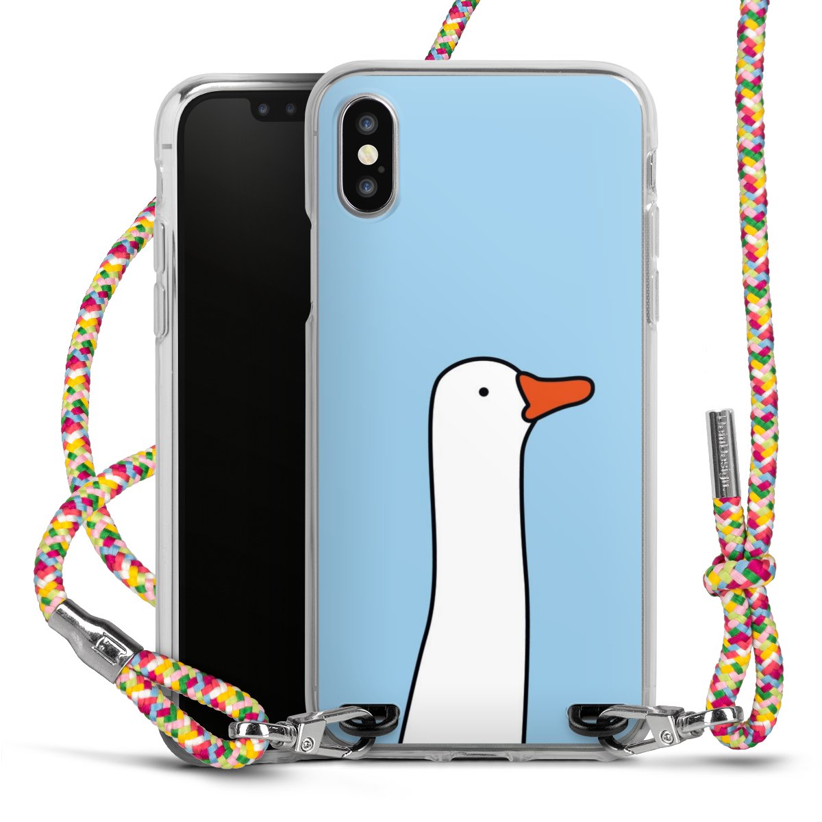 The flexible case is made from a highquality TPU material (thermoplastic Polyurethan). Thanks to its longlasting and break resistant characterisitcs, the case is flexible yet consistent in form and has a great grip and feel. The textile strap made from Polyester gives a chic yet casual accent allowing you to carry your phone like a bag or necklace - a practical gadget perfect for your next adventure. The textile strap is about 1.70 meters long and the length can easily be adjusted through the knots. Our Carry Case is available in Colourful, Mint-Camouflage, Very-Berry, Sahara-Sand and Sparkling-Neon. The ends of the textile strap are covered with metallic end caps to protect them against fraying.