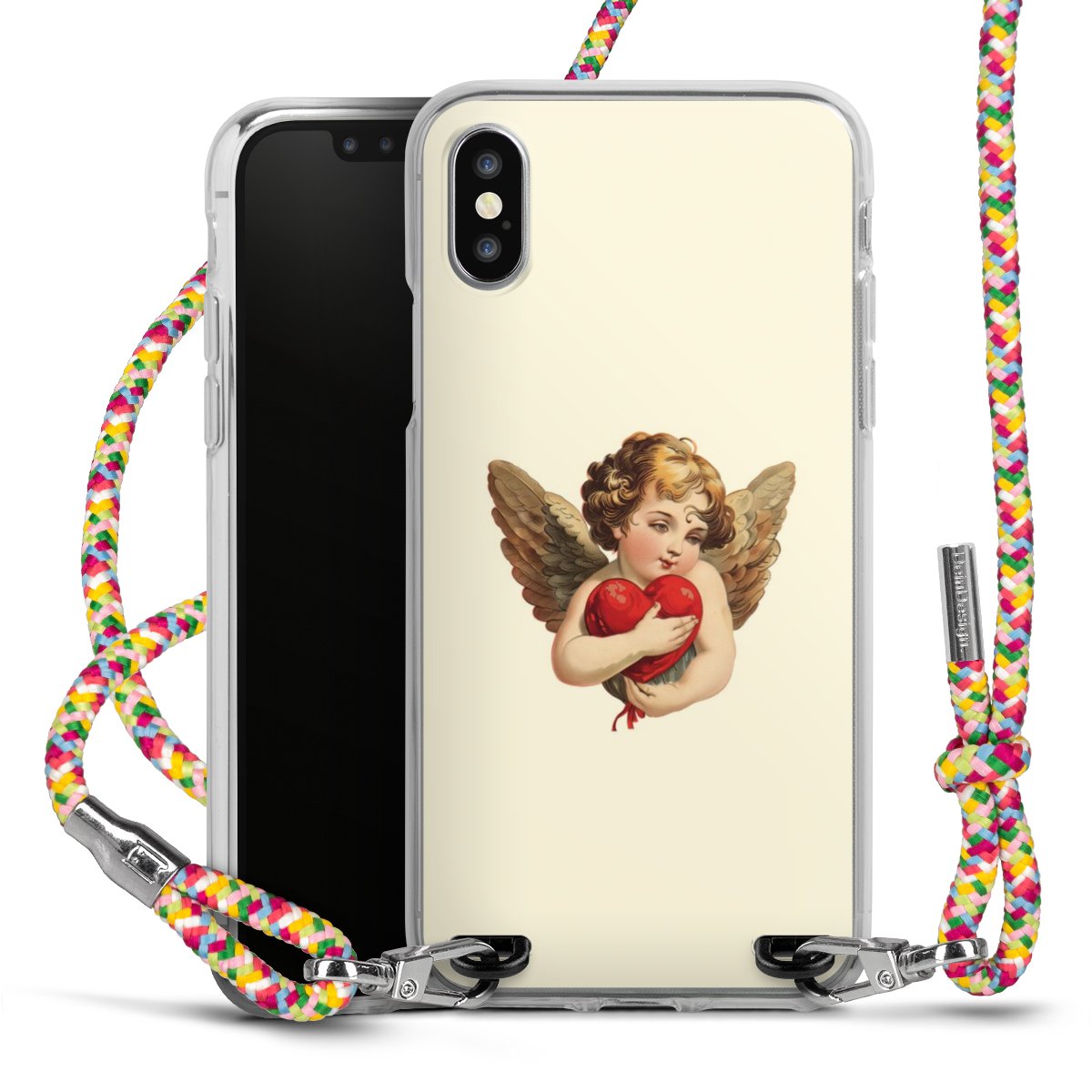 The flexible case is made from a highquality TPU material (thermoplastic Polyurethan). Thanks to its longlasting and break resistant characterisitcs, the case is flexible yet consistent in form and has a great grip and feel. The textile strap made from Polyester gives a chic yet casual accent allowing you to carry your phone like a bag or necklace - a practical gadget perfect for your next adventure. The textile strap is about 1.70 meters long and the length can easily be adjusted through the knots. Our Carry Case is available in Colourful, Mint-Camouflage, Very-Berry, Sahara-Sand and Sparkling-Neon. The ends of the textile strap are covered with metallic end caps to protect them against fraying.