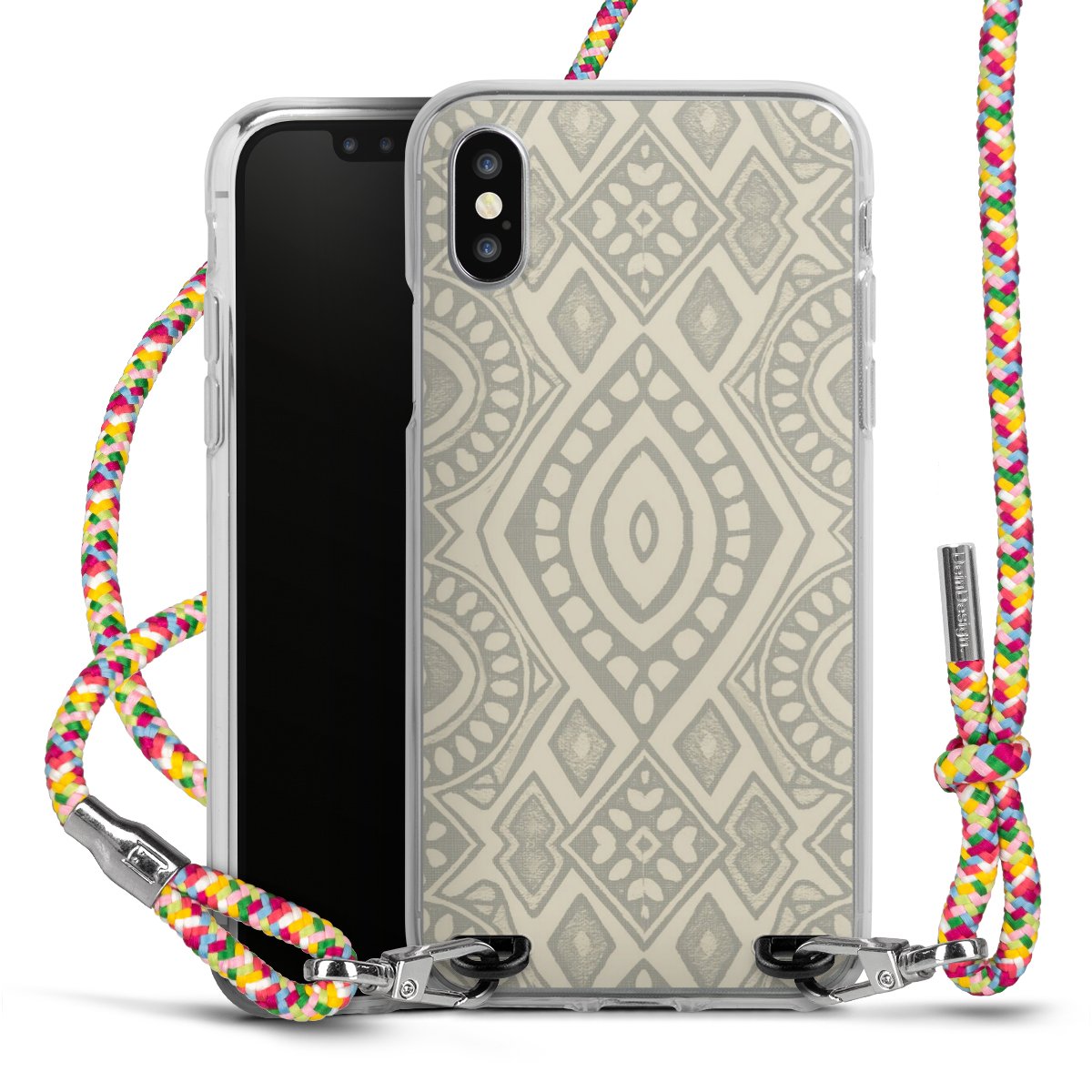 Boho Geometric Mosaic Pattern Neutral Grey and Beige