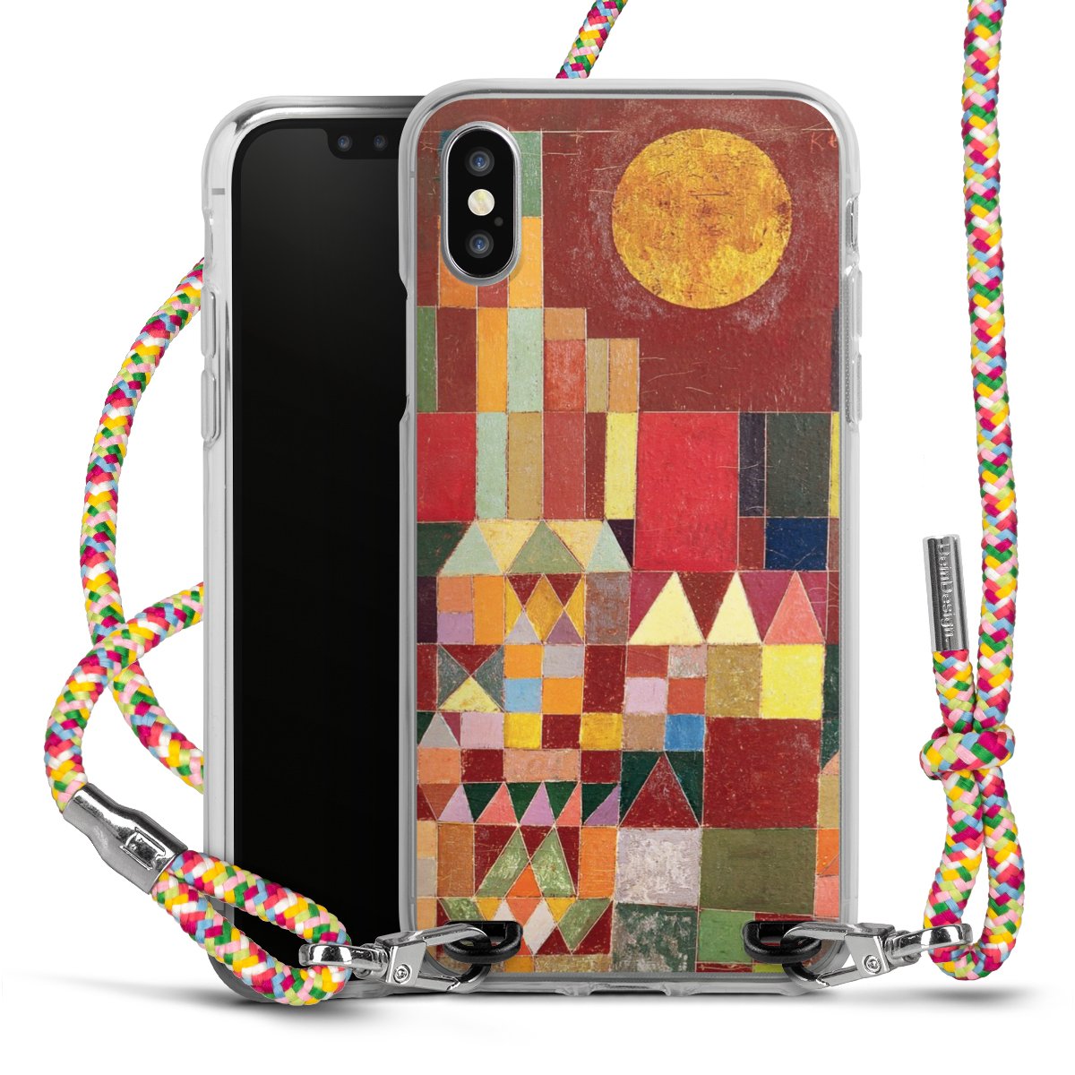The flexible case is made from a highquality TPU material (thermoplastic Polyurethan). Thanks to its longlasting and break resistant characterisitcs, the case is flexible yet consistent in form and has a great grip and feel. The textile strap made from Polyester gives a chic yet casual accent allowing you to carry your phone like a bag or necklace - a practical gadget perfect for your next adventure. The textile strap is about 1.70 meters long and the length can easily be adjusted through the knots. Our Carry Case is available in Colourful, Mint-Camouflage, Very-Berry, Sahara-Sand and Sparkling-Neon. The ends of the textile strap are covered with metallic end caps to protect them against fraying.