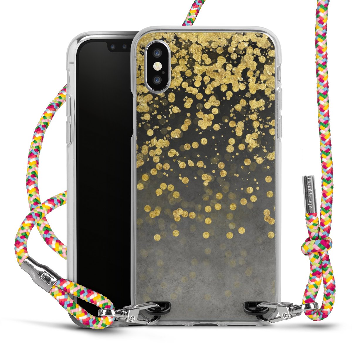 The flexible case is made from a highquality TPU material (thermoplastic Polyurethan). Thanks to its longlasting and break resistant characterisitcs, the case is flexible yet consistent in form and has a great grip and feel. The textile strap made from Polyester gives a chic yet casual accent allowing you to carry your phone like a bag or necklace - a practical gadget perfect for your next adventure. The textile strap is about 1.70 meters long and the length can easily be adjusted through the knots. Our Carry Case is available in Colourful, Mint-Camouflage, Very-Berry, Sahara-Sand and Sparkling-Neon. The ends of the textile strap are covered with metallic end caps to protect them against fraying.