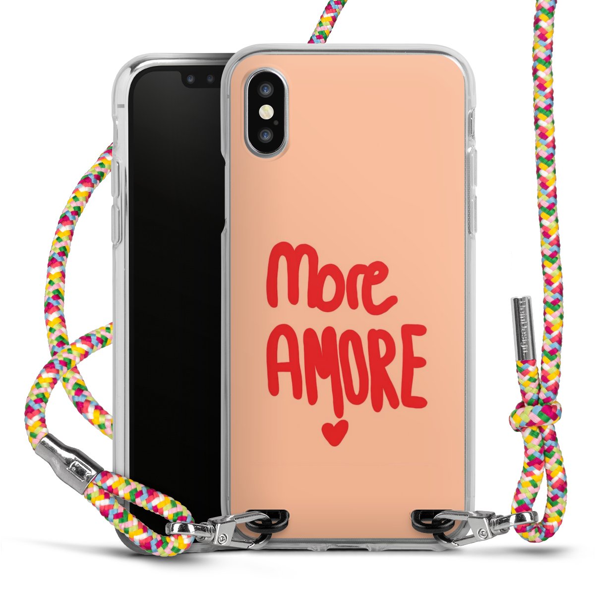 The flexible case is made from a highquality TPU material (thermoplastic Polyurethan). Thanks to its longlasting and break resistant characterisitcs, the case is flexible yet consistent in form and has a great grip and feel. The textile strap made from Polyester gives a chic yet casual accent allowing you to carry your phone like a bag or necklace - a practical gadget perfect for your next adventure. The textile strap is about 1.70 meters long and the length can easily be adjusted through the knots. Our Carry Case is available in Colourful, Mint-Camouflage, Very-Berry, Sahara-Sand and Sparkling-Neon. The ends of the textile strap are covered with metallic end caps to protect them against fraying.