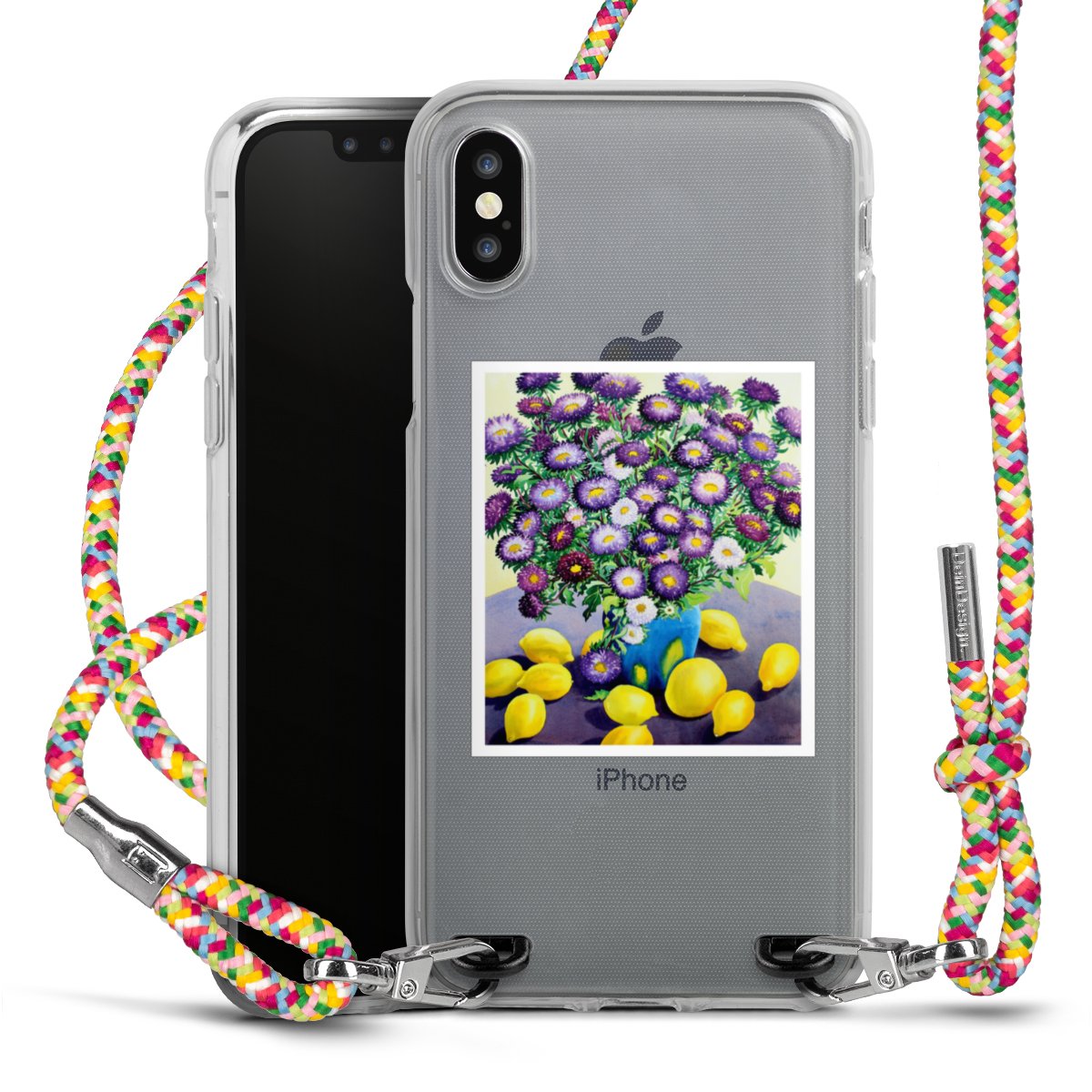 The flexible case is made from a highquality TPU material (thermoplastic Polyurethan). Thanks to its longlasting and break resistant characterisitcs, the case is flexible yet consistent in form and has a great grip and feel. The textile strap made from Polyester gives a chic yet casual accent allowing you to carry your phone like a bag or necklace - a practical gadget perfect for your next adventure. The textile strap is about 1.70 meters long and the length can easily be adjusted through the knots. Our Carry Case is available in Colourful, Mint-Camouflage, Very-Berry, Sahara-Sand and Sparkling-Neon. The ends of the textile strap are covered with metallic end caps to protect them against fraying.