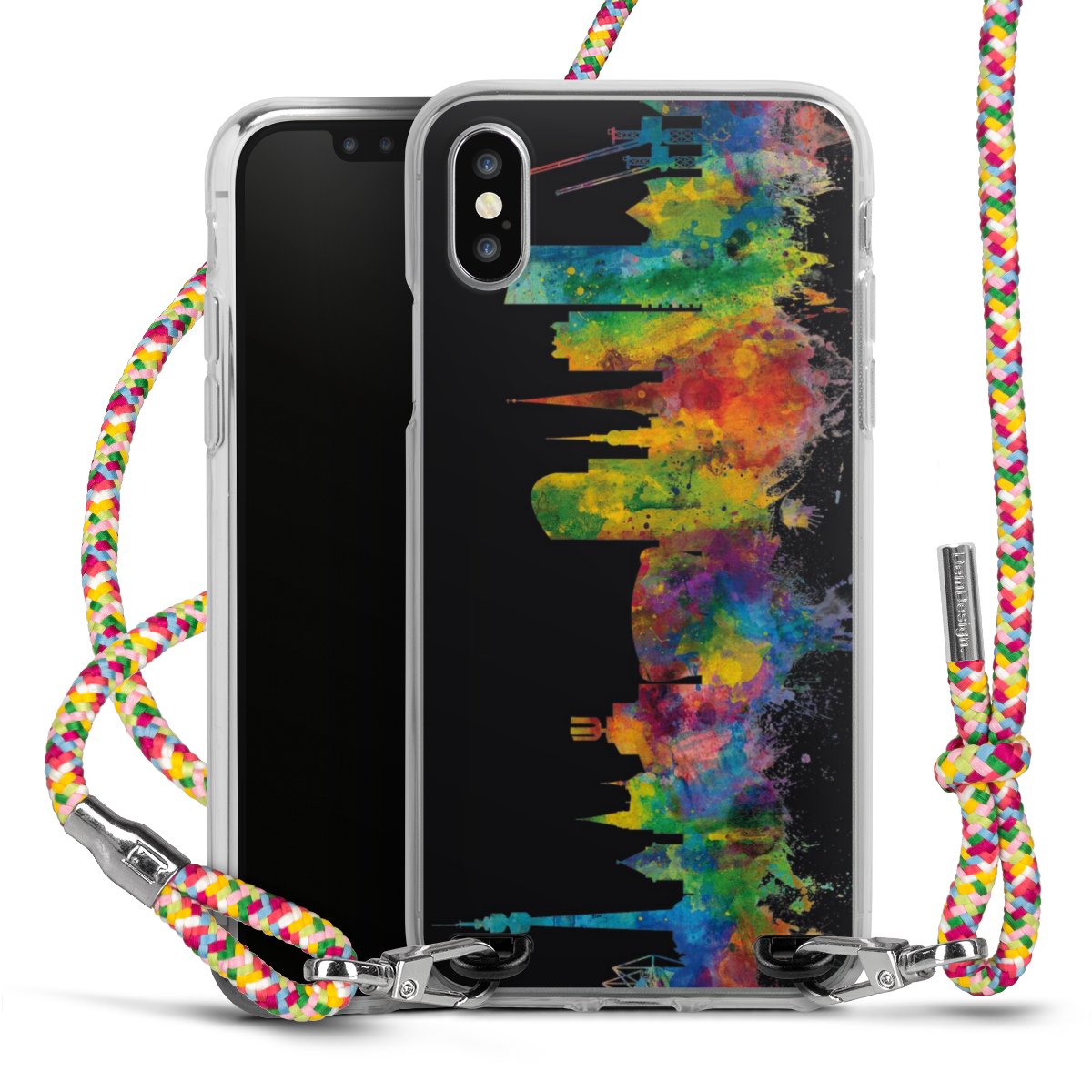 The flexible case is made from a highquality TPU material (thermoplastic Polyurethan). Thanks to its longlasting and break resistant characterisitcs, the case is flexible yet consistent in form and has a great grip and feel. The textile strap made from Polyester gives a chic yet casual accent allowing you to carry your phone like a bag or necklace - a practical gadget perfect for your next adventure. The textile strap is about 1.70 meters long and the length can easily be adjusted through the knots. Our Carry Case is available in Colourful, Mint-Camouflage, Very-Berry, Sahara-Sand and Sparkling-Neon. The ends of the textile strap are covered with metallic end caps to protect them against fraying.