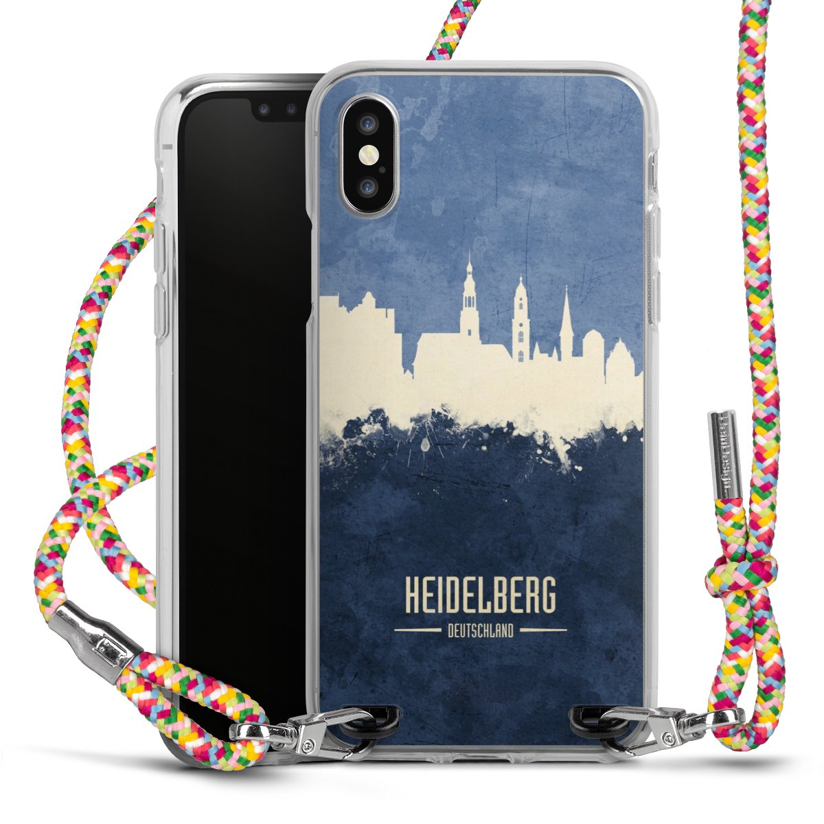 The flexible case is made from a highquality TPU material (thermoplastic Polyurethan). Thanks to its longlasting and break resistant characterisitcs, the case is flexible yet consistent in form and has a great grip and feel. The textile strap made from Polyester gives a chic yet casual accent allowing you to carry your phone like a bag or necklace - a practical gadget perfect for your next adventure. The textile strap is about 1.70 meters long and the length can easily be adjusted through the knots. Our Carry Case is available in Colourful, Mint-Camouflage, Very-Berry, Sahara-Sand and Sparkling-Neon. The ends of the textile strap are covered with metallic end caps to protect them against fraying.