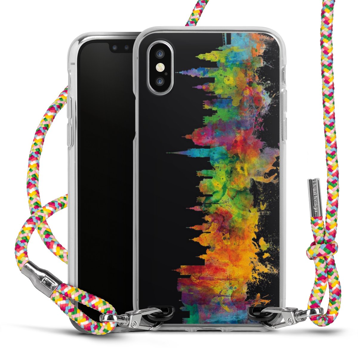 The flexible case is made from a highquality TPU material (thermoplastic Polyurethan). Thanks to its longlasting and break resistant characterisitcs, the case is flexible yet consistent in form and has a great grip and feel. The textile strap made from Polyester gives a chic yet casual accent allowing you to carry your phone like a bag or necklace - a practical gadget perfect for your next adventure. The textile strap is about 1.70 meters long and the length can easily be adjusted through the knots. Our Carry Case is available in Colourful, Mint-Camouflage, Very-Berry, Sahara-Sand and Sparkling-Neon. The ends of the textile strap are covered with metallic end caps to protect them against fraying.