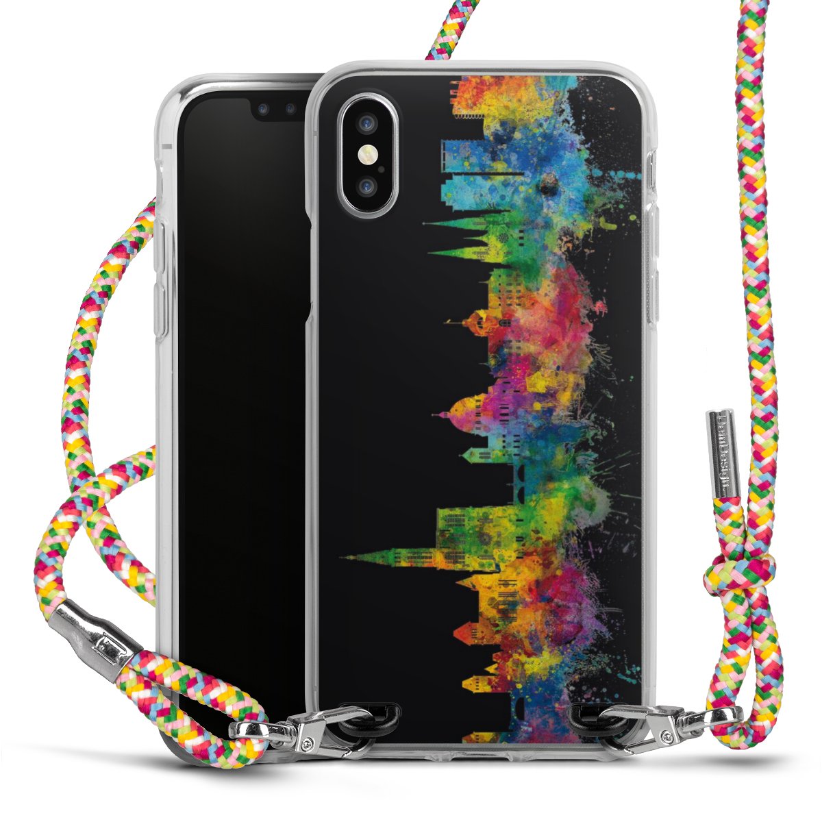 The flexible case is made from a highquality TPU material (thermoplastic Polyurethan). Thanks to its longlasting and break resistant characterisitcs, the case is flexible yet consistent in form and has a great grip and feel. The textile strap made from Polyester gives a chic yet casual accent allowing you to carry your phone like a bag or necklace - a practical gadget perfect for your next adventure. The textile strap is about 1.70 meters long and the length can easily be adjusted through the knots. Our Carry Case is available in Colourful, Mint-Camouflage, Very-Berry, Sahara-Sand and Sparkling-Neon. The ends of the textile strap are covered with metallic end caps to protect them against fraying.