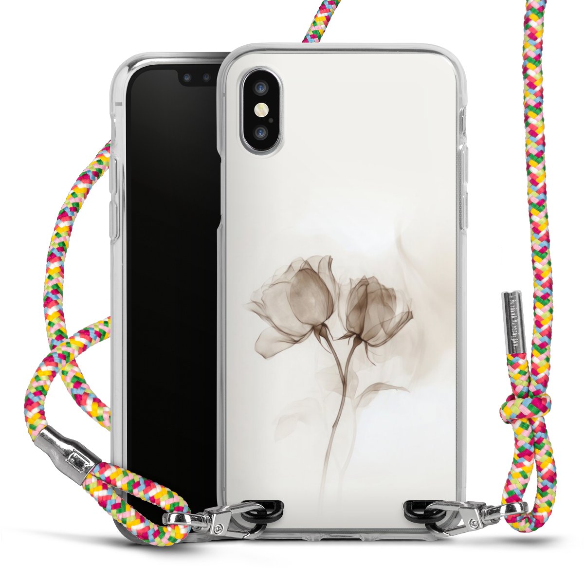 The flexible case is made from a highquality TPU material (thermoplastic Polyurethan). Thanks to its longlasting and break resistant characterisitcs, the case is flexible yet consistent in form and has a great grip and feel. The textile strap made from Polyester gives a chic yet casual accent allowing you to carry your phone like a bag or necklace - a practical gadget perfect for your next adventure. The textile strap is about 1.70 meters long and the length can easily be adjusted through the knots. Our Carry Case is available in Colourful, Mint-Camouflage, Very-Berry, Sahara-Sand and Sparkling-Neon. The ends of the textile strap are covered with metallic end caps to protect them against fraying.
