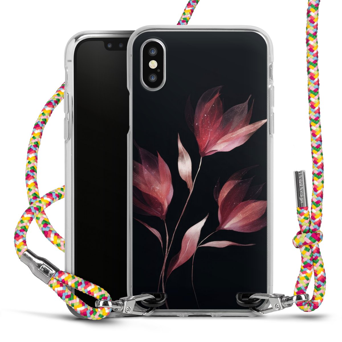 The flexible case is made from a highquality TPU material (thermoplastic Polyurethan). Thanks to its longlasting and break resistant characterisitcs, the case is flexible yet consistent in form and has a great grip and feel. The textile strap made from Polyester gives a chic yet casual accent allowing you to carry your phone like a bag or necklace - a practical gadget perfect for your next adventure. The textile strap is about 1.70 meters long and the length can easily be adjusted through the knots. Our Carry Case is available in Colourful, Mint-Camouflage, Very-Berry, Sahara-Sand and Sparkling-Neon. The ends of the textile strap are covered with metallic end caps to protect them against fraying.