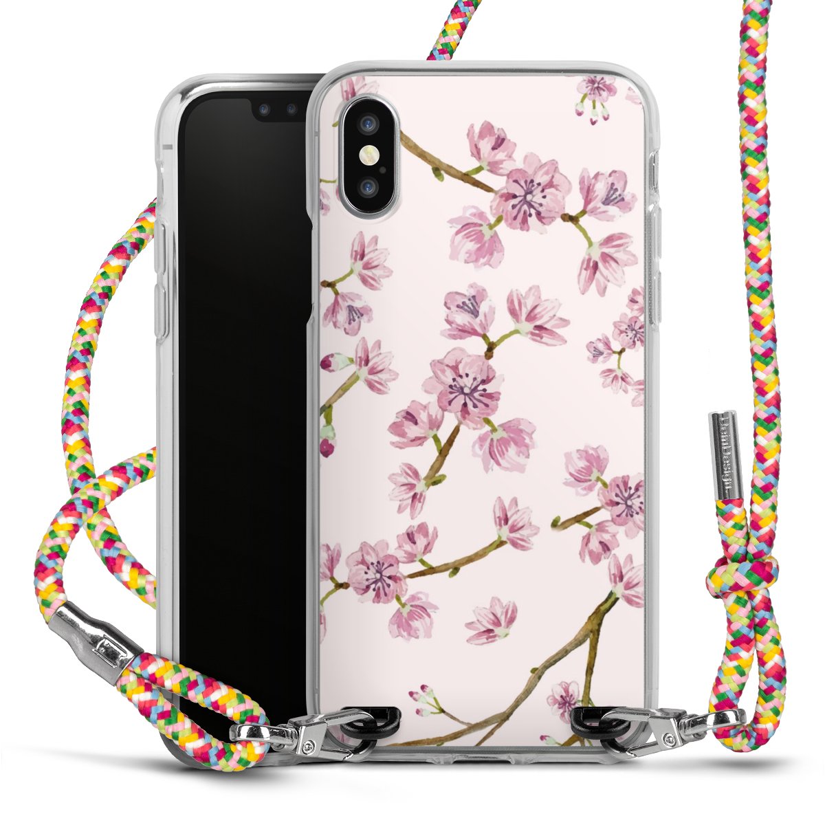 The flexible case is made from a highquality TPU material (thermoplastic Polyurethan). Thanks to its longlasting and break resistant characterisitcs, the case is flexible yet consistent in form and has a great grip and feel. The textile strap made from Polyester gives a chic yet casual accent allowing you to carry your phone like a bag or necklace - a practical gadget perfect for your next adventure. The textile strap is about 1.70 meters long and the length can easily be adjusted through the knots. Our Carry Case is available in Colourful, Mint-Camouflage, Very-Berry, Sahara-Sand and Sparkling-Neon. The ends of the textile strap are covered with metallic end caps to protect them against fraying.