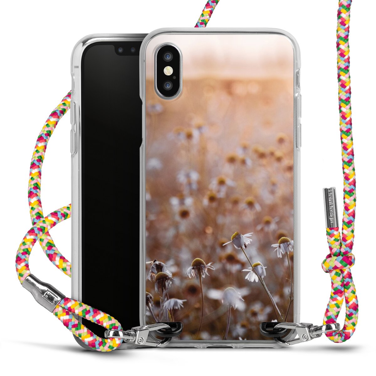The flexible case is made from a highquality TPU material (thermoplastic Polyurethan). Thanks to its longlasting and break resistant characterisitcs, the case is flexible yet consistent in form and has a great grip and feel. The textile strap made from Polyester gives a chic yet casual accent allowing you to carry your phone like a bag or necklace - a practical gadget perfect for your next adventure. The textile strap is about 1.70 meters long and the length can easily be adjusted through the knots. Our Carry Case is available in Colourful, Mint-Camouflage, Very-Berry, Sahara-Sand and Sparkling-Neon. The ends of the textile strap are covered with metallic end caps to protect them against fraying.