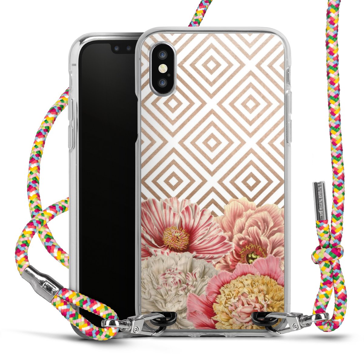 The flexible case is made from a highquality TPU material (thermoplastic Polyurethan). Thanks to its longlasting and break resistant characterisitcs, the case is flexible yet consistent in form and has a great grip and feel. The textile strap made from Polyester gives a chic yet casual accent allowing you to carry your phone like a bag or necklace - a practical gadget perfect for your next adventure. The textile strap is about 1.70 meters long and the length can easily be adjusted through the knots. Our Carry Case is available in Colourful, Mint-Camouflage, Very-Berry, Sahara-Sand and Sparkling-Neon. The ends of the textile strap are covered with metallic end caps to protect them against fraying.