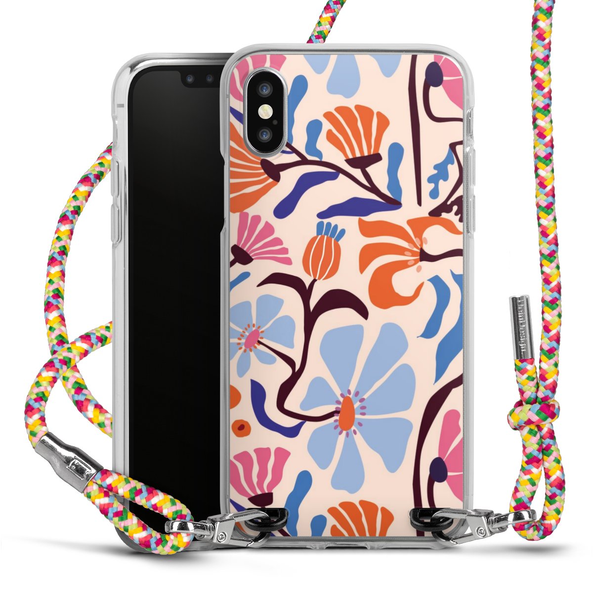 The flexible case is made from a highquality TPU material (thermoplastic Polyurethan). Thanks to its longlasting and break resistant characterisitcs, the case is flexible yet consistent in form and has a great grip and feel. The textile strap made from Polyester gives a chic yet casual accent allowing you to carry your phone like a bag or necklace - a practical gadget perfect for your next adventure. The textile strap is about 1.70 meters long and the length can easily be adjusted through the knots. Our Carry Case is available in Colourful, Mint-Camouflage, Very-Berry, Sahara-Sand and Sparkling-Neon. The ends of the textile strap are covered with metallic end caps to protect them against fraying.