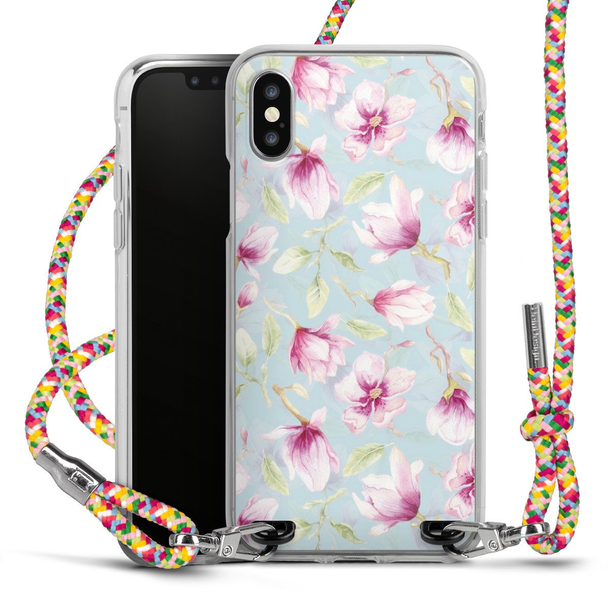 The flexible case is made from a highquality TPU material (thermoplastic Polyurethan). Thanks to its longlasting and break resistant characterisitcs, the case is flexible yet consistent in form and has a great grip and feel. The textile strap made from Polyester gives a chic yet casual accent allowing you to carry your phone like a bag or necklace - a practical gadget perfect for your next adventure. The textile strap is about 1.70 meters long and the length can easily be adjusted through the knots. Our Carry Case is available in Colourful, Mint-Camouflage, Very-Berry, Sahara-Sand and Sparkling-Neon. The ends of the textile strap are covered with metallic end caps to protect them against fraying.