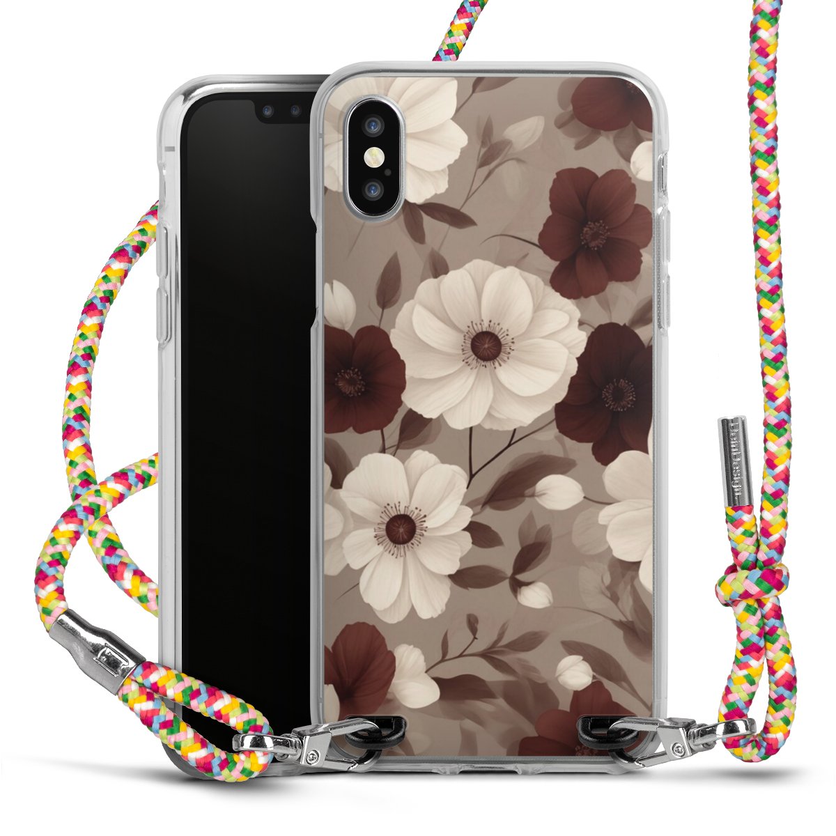 The flexible case is made from a highquality TPU material (thermoplastic Polyurethan). Thanks to its longlasting and break resistant characterisitcs, the case is flexible yet consistent in form and has a great grip and feel. The textile strap made from Polyester gives a chic yet casual accent allowing you to carry your phone like a bag or necklace - a practical gadget perfect for your next adventure. The textile strap is about 1.70 meters long and the length can easily be adjusted through the knots. Our Carry Case is available in Colourful, Mint-Camouflage, Very-Berry, Sahara-Sand and Sparkling-Neon. The ends of the textile strap are covered with metallic end caps to protect them against fraying.