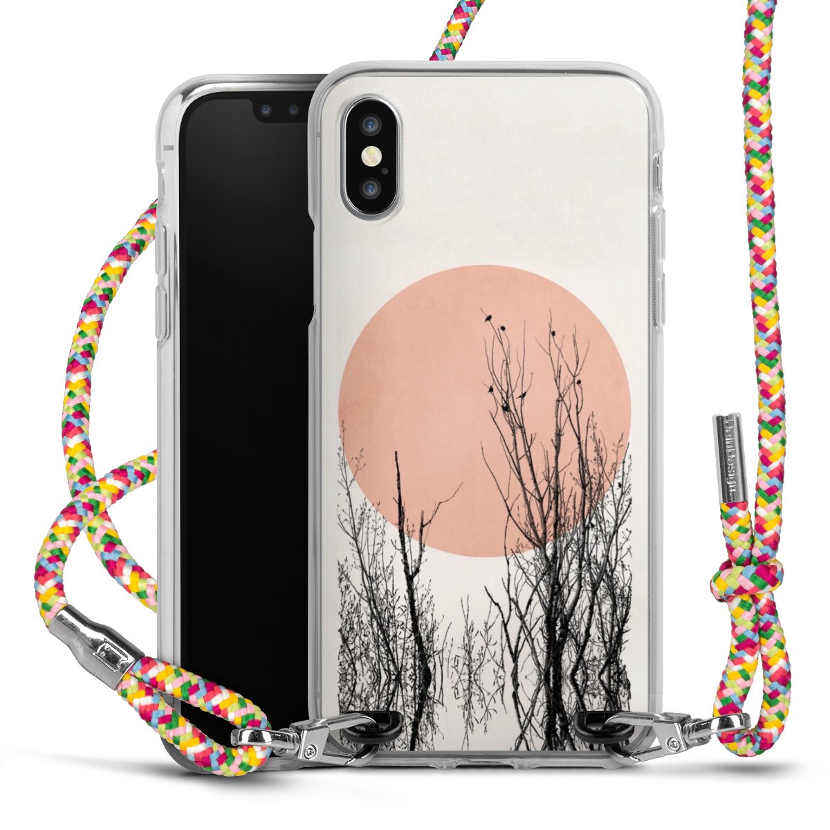 The flexible case is made from a highquality TPU material (thermoplastic Polyurethan). Thanks to its longlasting and break resistant characterisitcs, the case is flexible yet consistent in form and has a great grip and feel. The textile strap made from Polyester gives a chic yet casual accent allowing you to carry your phone like a bag or necklace - a practical gadget perfect for your next adventure. The textile strap is about 1.70 meters long and the length can easily be adjusted through the knots. Our Carry Case is available in Colourful, Mint-Camouflage, Very-Berry, Sahara-Sand and Sparkling-Neon. The ends of the textile strap are covered with metallic end caps to protect them against fraying.