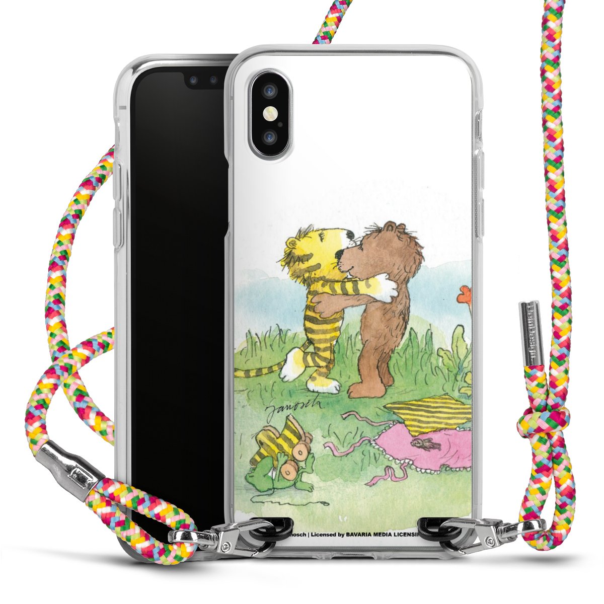 The flexible case is made from a highquality TPU material (thermoplastic Polyurethan). Thanks to its longlasting and break resistant characterisitcs, the case is flexible yet consistent in form and has a great grip and feel. The textile strap made from Polyester gives a chic yet casual accent allowing you to carry your phone like a bag or necklace - a practical gadget perfect for your next adventure. The textile strap is about 1.70 meters long and the length can easily be adjusted through the knots. Our Carry Case is available in Colourful, Mint-Camouflage, Very-Berry, Sahara-Sand and Sparkling-Neon. The ends of the textile strap are covered with metallic end caps to protect them against fraying.