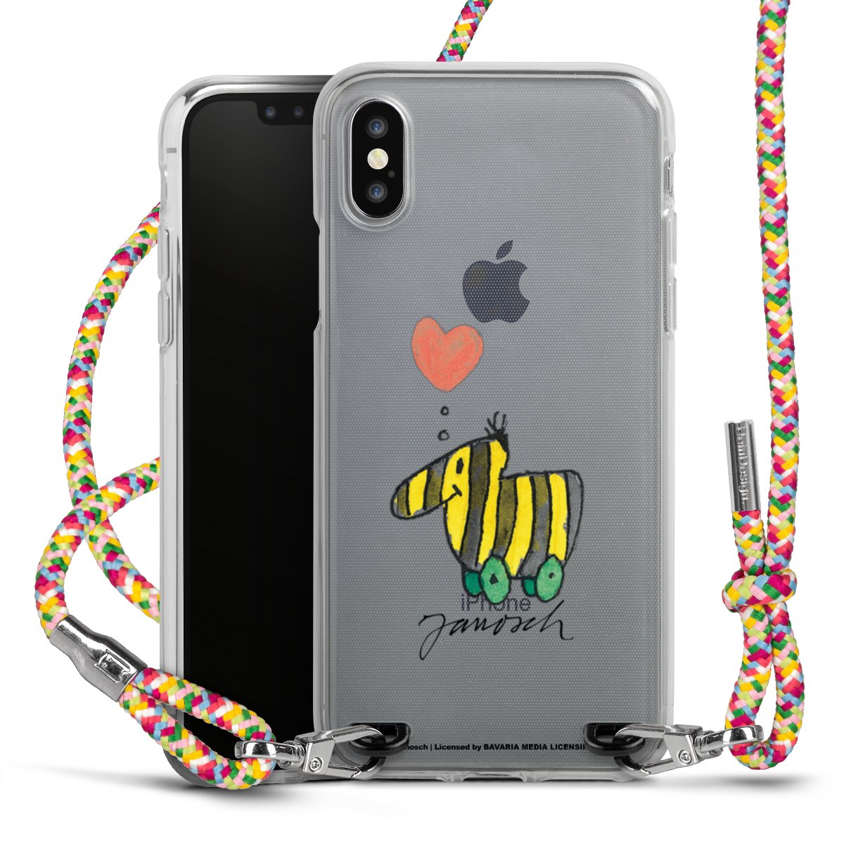 The flexible case is made from a highquality TPU material (thermoplastic Polyurethan). Thanks to its longlasting and break resistant characterisitcs, the case is flexible yet consistent in form and has a great grip and feel. The textile strap made from Polyester gives a chic yet casual accent allowing you to carry your phone like a bag or necklace - a practical gadget perfect for your next adventure. The textile strap is about 1.70 meters long and the length can easily be adjusted through the knots. Our Carry Case is available in Colourful, Mint-Camouflage, Very-Berry, Sahara-Sand and Sparkling-Neon. The ends of the textile strap are covered with metallic end caps to protect them against fraying.