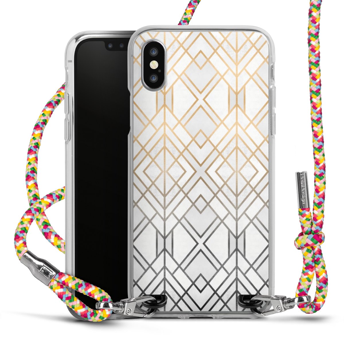 The flexible case is made from a highquality TPU material (thermoplastic Polyurethan). Thanks to its longlasting and break resistant characterisitcs, the case is flexible yet consistent in form and has a great grip and feel. The textile strap made from Polyester gives a chic yet casual accent allowing you to carry your phone like a bag or necklace - a practical gadget perfect for your next adventure. The textile strap is about 1.70 meters long and the length can easily be adjusted through the knots. Our Carry Case is available in Colourful, Mint-Camouflage, Very-Berry, Sahara-Sand and Sparkling-Neon. The ends of the textile strap are covered with metallic end caps to protect them against fraying.