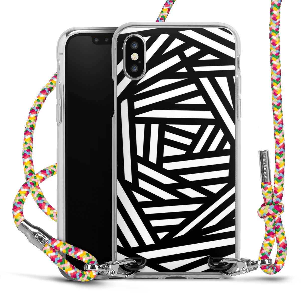 The flexible case is made from a highquality TPU material (thermoplastic Polyurethan). Thanks to its longlasting and break resistant characterisitcs, the case is flexible yet consistent in form and has a great grip and feel. The textile strap made from Polyester gives a chic yet casual accent allowing you to carry your phone like a bag or necklace - a practical gadget perfect for your next adventure. The textile strap is about 1.70 meters long and the length can easily be adjusted through the knots. Our Carry Case is available in Colourful, Mint-Camouflage, Very-Berry, Sahara-Sand and Sparkling-Neon. The ends of the textile strap are covered with metallic end caps to protect them against fraying.