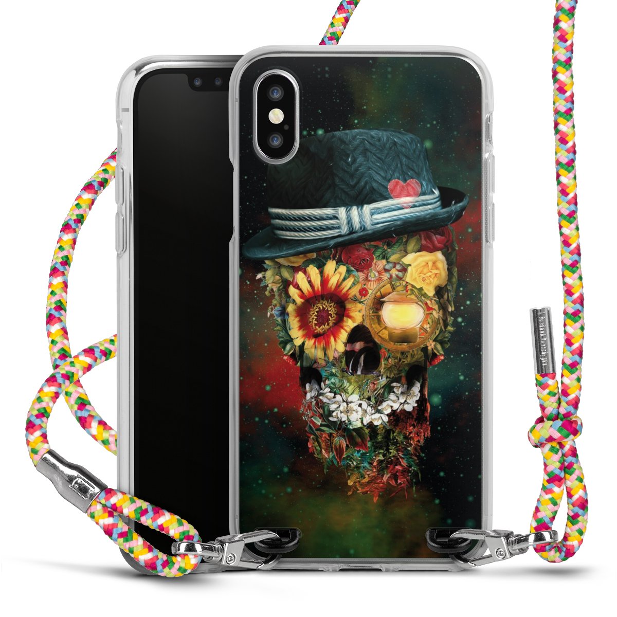The flexible case is made from a highquality TPU material (thermoplastic Polyurethan). Thanks to its longlasting and break resistant characterisitcs, the case is flexible yet consistent in form and has a great grip and feel. The textile strap made from Polyester gives a chic yet casual accent allowing you to carry your phone like a bag or necklace - a practical gadget perfect for your next adventure. The textile strap is about 1.70 meters long and the length can easily be adjusted through the knots. Our Carry Case is available in Colourful, Mint-Camouflage, Very-Berry, Sahara-Sand and Sparkling-Neon. The ends of the textile strap are covered with metallic end caps to protect them against fraying.