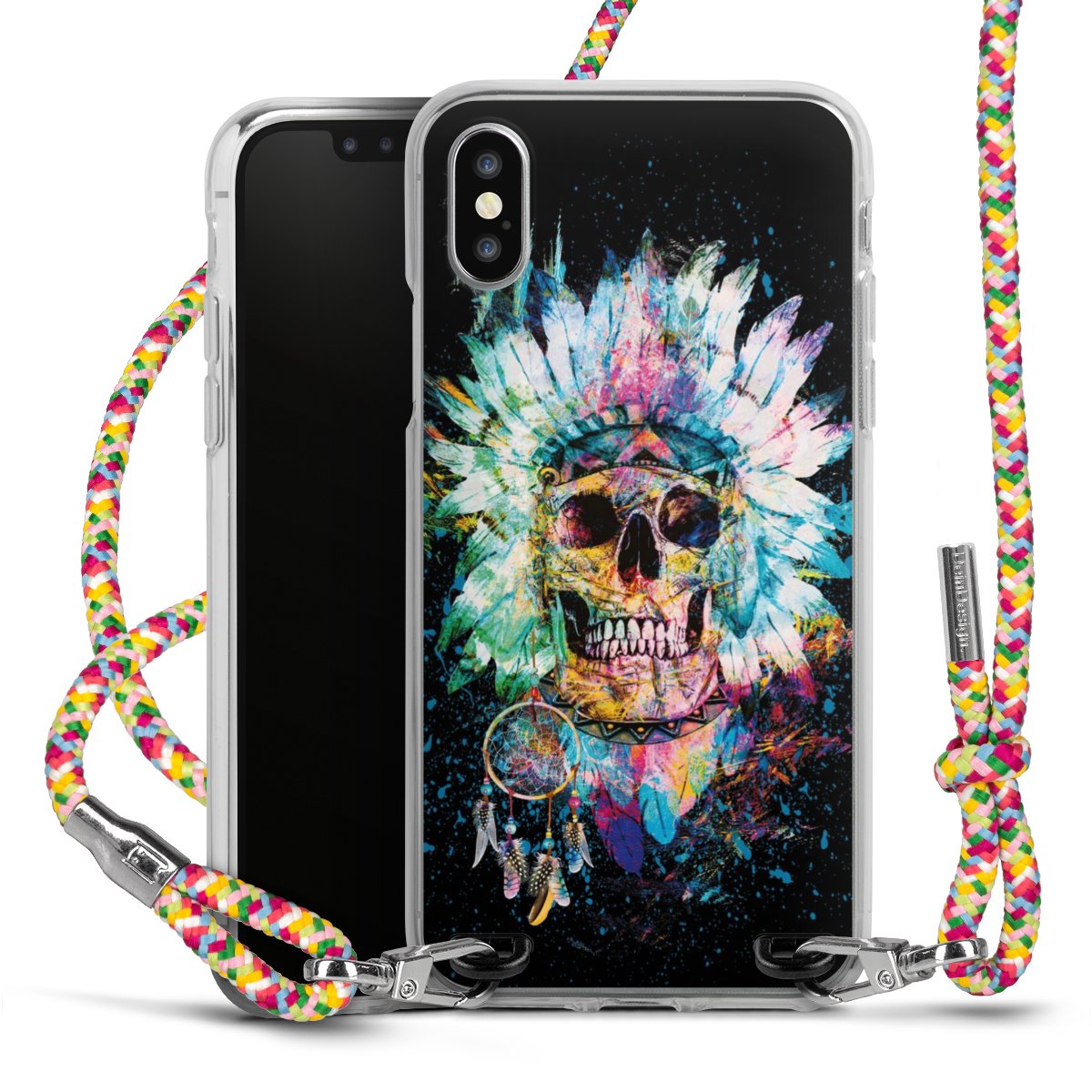 The flexible case is made from a highquality TPU material (thermoplastic Polyurethan). Thanks to its longlasting and break resistant characterisitcs, the case is flexible yet consistent in form and has a great grip and feel. The textile strap made from Polyester gives a chic yet casual accent allowing you to carry your phone like a bag or necklace - a practical gadget perfect for your next adventure. The textile strap is about 1.70 meters long and the length can easily be adjusted through the knots. Our Carry Case is available in Colourful, Mint-Camouflage, Very-Berry, Sahara-Sand and Sparkling-Neon. The ends of the textile strap are covered with metallic end caps to protect them against fraying.