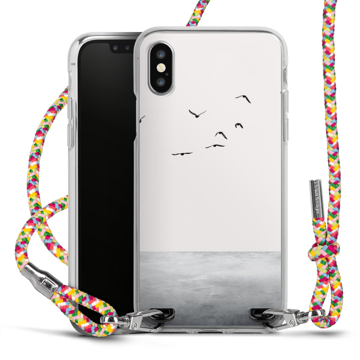The flexible case is made from a highquality TPU material (thermoplastic Polyurethan). Thanks to its longlasting and break resistant characterisitcs, the case is flexible yet consistent in form and has a great grip and feel. The textile strap made from Polyester gives a chic yet casual accent allowing you to carry your phone like a bag or necklace - a practical gadget perfect for your next adventure. The textile strap is about 1.70 meters long and the length can easily be adjusted through the knots. Our Carry Case is available in Colourful, Mint-Camouflage, Very-Berry, Sahara-Sand and Sparkling-Neon. The ends of the textile strap are covered with metallic end caps to protect them against fraying.